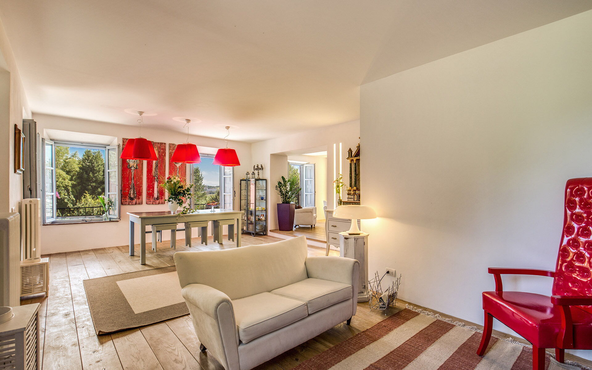 Fin dal grosso cancello d’ingresso l’incanto del luogo è magico. Al suo interno la Villa può ospitare fino a 12 persone in 7 spaziose camere dove il classico sposa la modernità. Per le giornate di sole, all’aperto è presente un ampio giardino con diverse zone per il relax, per trascorrere piacevoli momenti di lettura ma anche per party e lunghe chiacchierate o passeggiate.