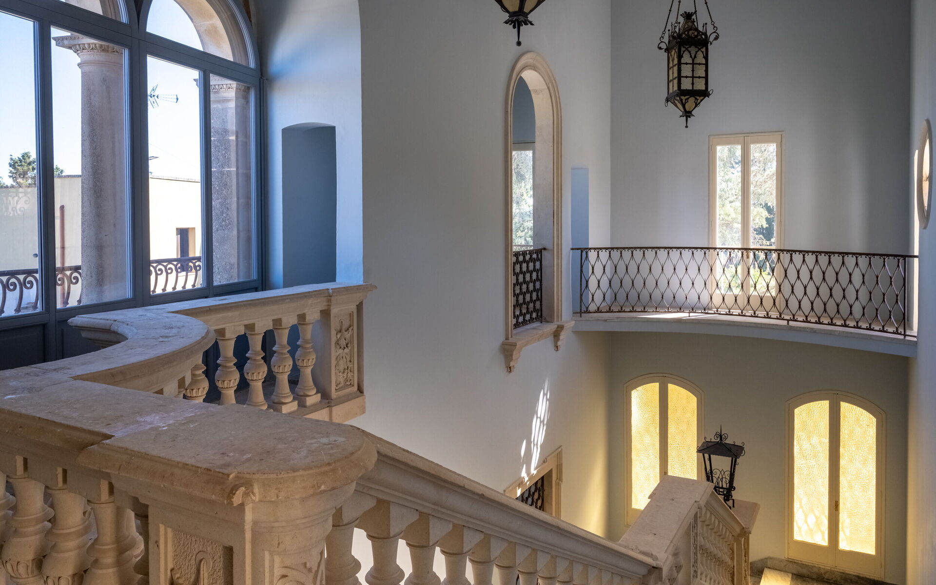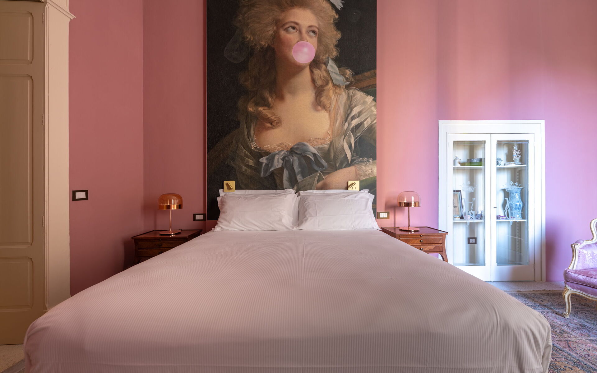 Il primo piano, la zona nobile del palazzo, è diviso in due ali. La prima comprende il Bubble Apartment con due camere da letto matrimoniali, due bagni, un soggiorno con divano letto, una cucina attrezzata che si affaccia su un ampio soggiorno zona pranzo e una terrazza. La seconda offre la Royal Suite con una master be dotata di macchina Nespresso con capsule, bollitore e frigobar. La terrazza e il balcone con vista panoramica sul giardino sono la cornice che abbraccia sia l'appartamento Bubble sia la Suite.