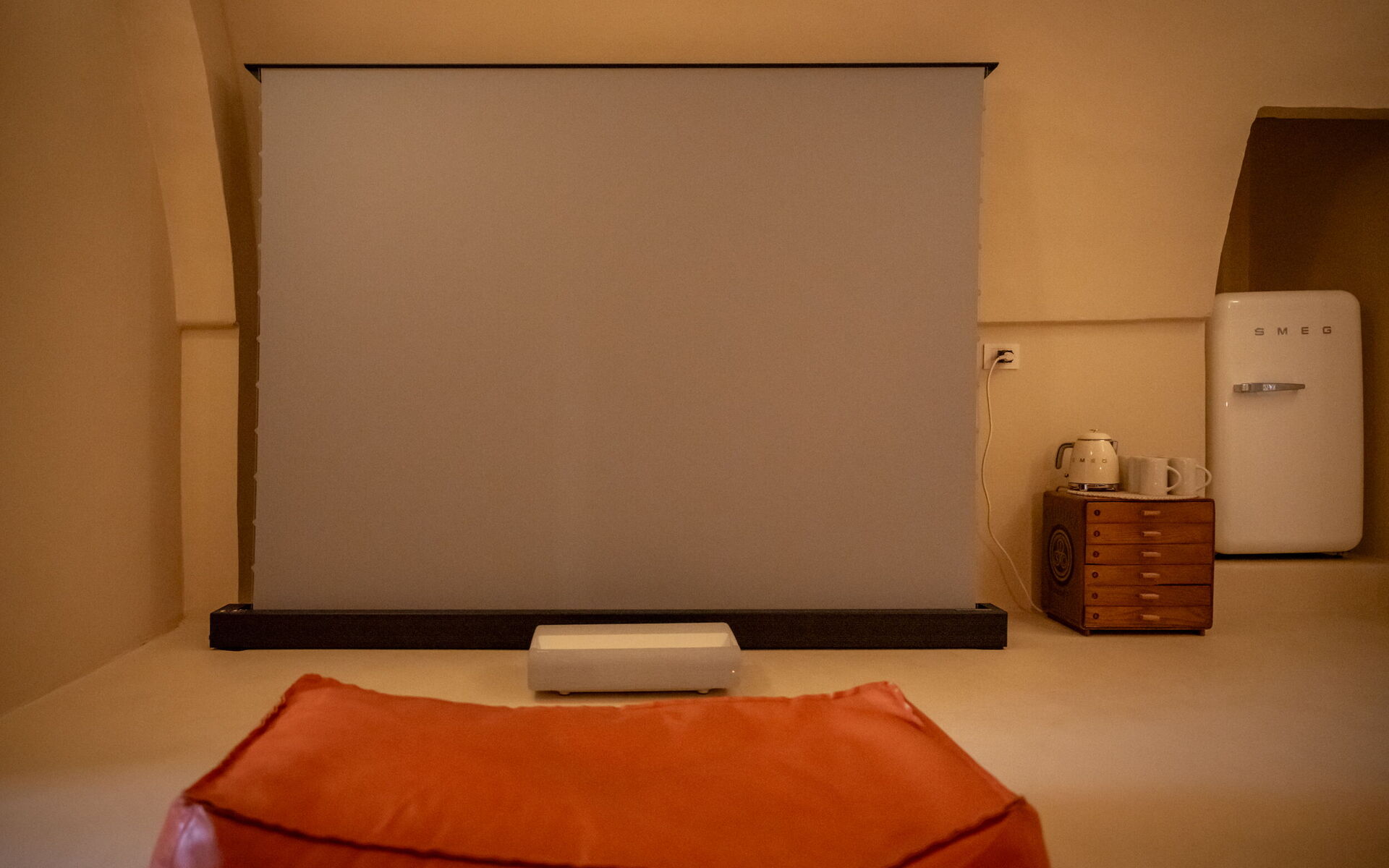 Comprende due camere da letto, una per due ospiti e un’altra per quattro, e una piacevole sorpresa: La sala cinema e giochi accogliente, dotata di uno schermo da 100 pollici, un proiettore 4K di alta qualità e una postazione PS5 completamente attrezzata.