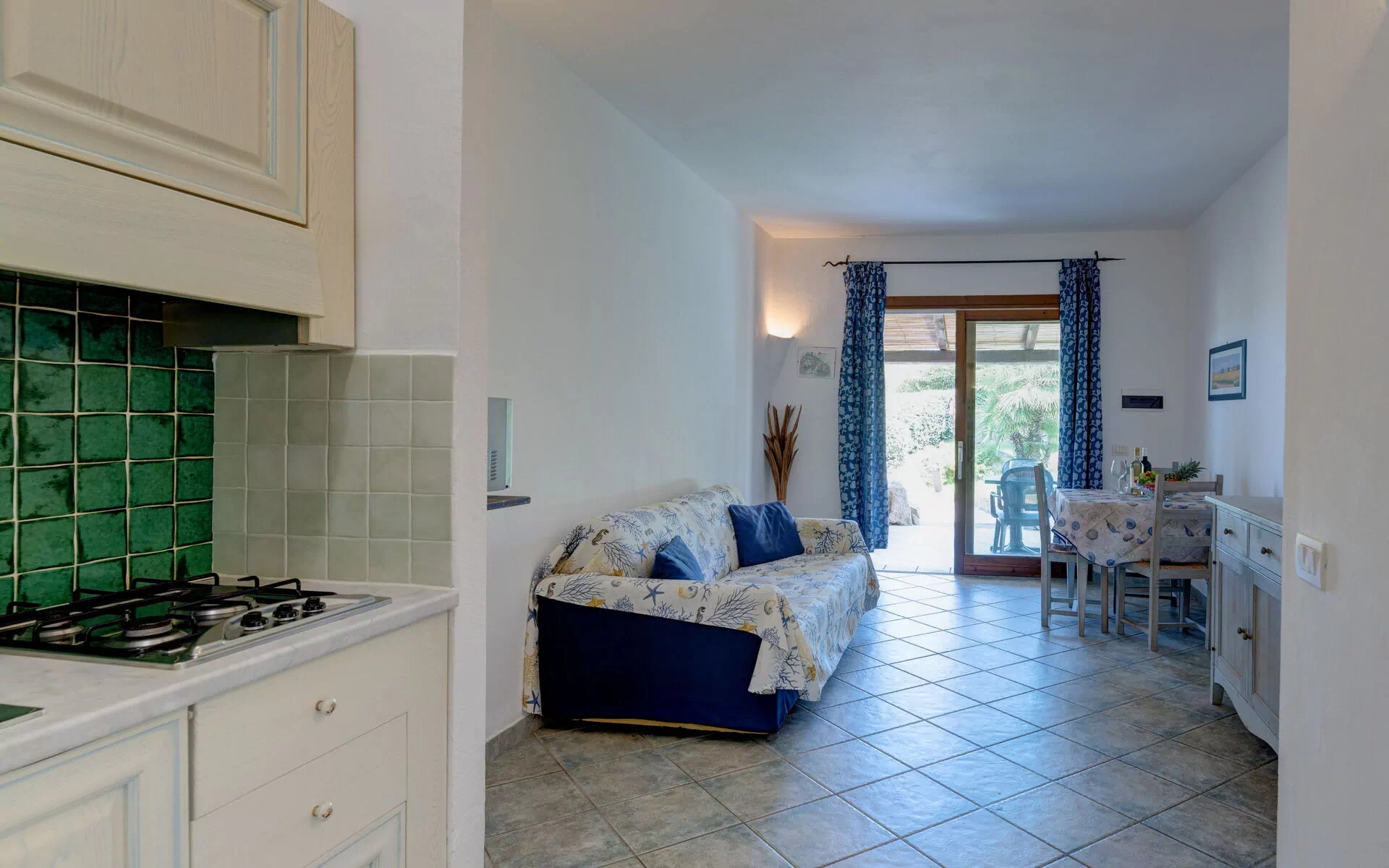 La casa è composta da 1 camera da letto matrimoniale, divano letto doppio nel soggiorno e 1 bagno con doccia. Tutti gli appartamenti sono dotati di aria condizionata, TV, Wi-Fi, microonde, tostapane, bollitore, asciugacapelli e di balcone o patio attrezzati.Seppur appartenendo alla stessa tipologia possono differire per arredi e dotazioni.NB: €50 per omissione pulizie angolo cottura e €50 per mancato conferimento rifiuti da pagare in loco