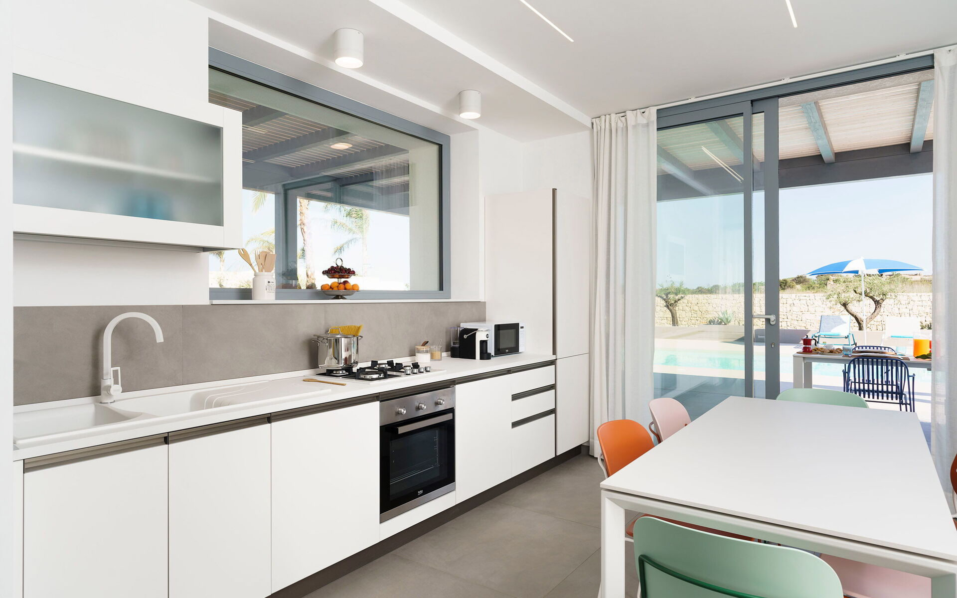 Aria condizionata, Cucina ben attrezzata, Ferro da stiro, Forno, Freezer, Frigo, Internet, Internet WiFi, Lavastoviglie, Macchina da caffè (Italiana), Macchina da caffè americano, Microonde, Piano Cottura, Rilevatore di CO2, Rilevatore di fumo, Seggiolone, Tavolo da pranzo, Tostapane, Uscita sulla terrazza