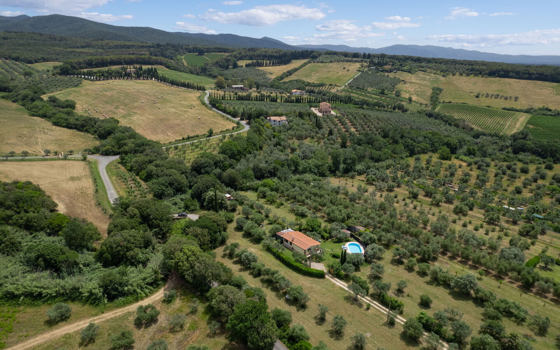 Questa graziosa abitazione è un villino di campagna inserito in un contesto ambientale tipico delle località vicine alla costa. Completamente immersa in un paesaggio incontaminato tra dolci e basse colline, i cui colori cambiano con il susseguirsi delle stagioni, non è distante dal centro di Bibbona, da Bolgheri e dal mare. La Villa dispone di un loggiato attrezzato per pranzi e cene all'aperto (barbecue) di un curato giardino recintato e una piccola piscina ad uso esclusivo degli ospiti (8,00m. x 4,50m. prof. 1,30m. ovale), nelle cui acque è possibile godere momenti di estremo relax, magari gustando i frutti di stagione che gli alberi della proprietà offrono.