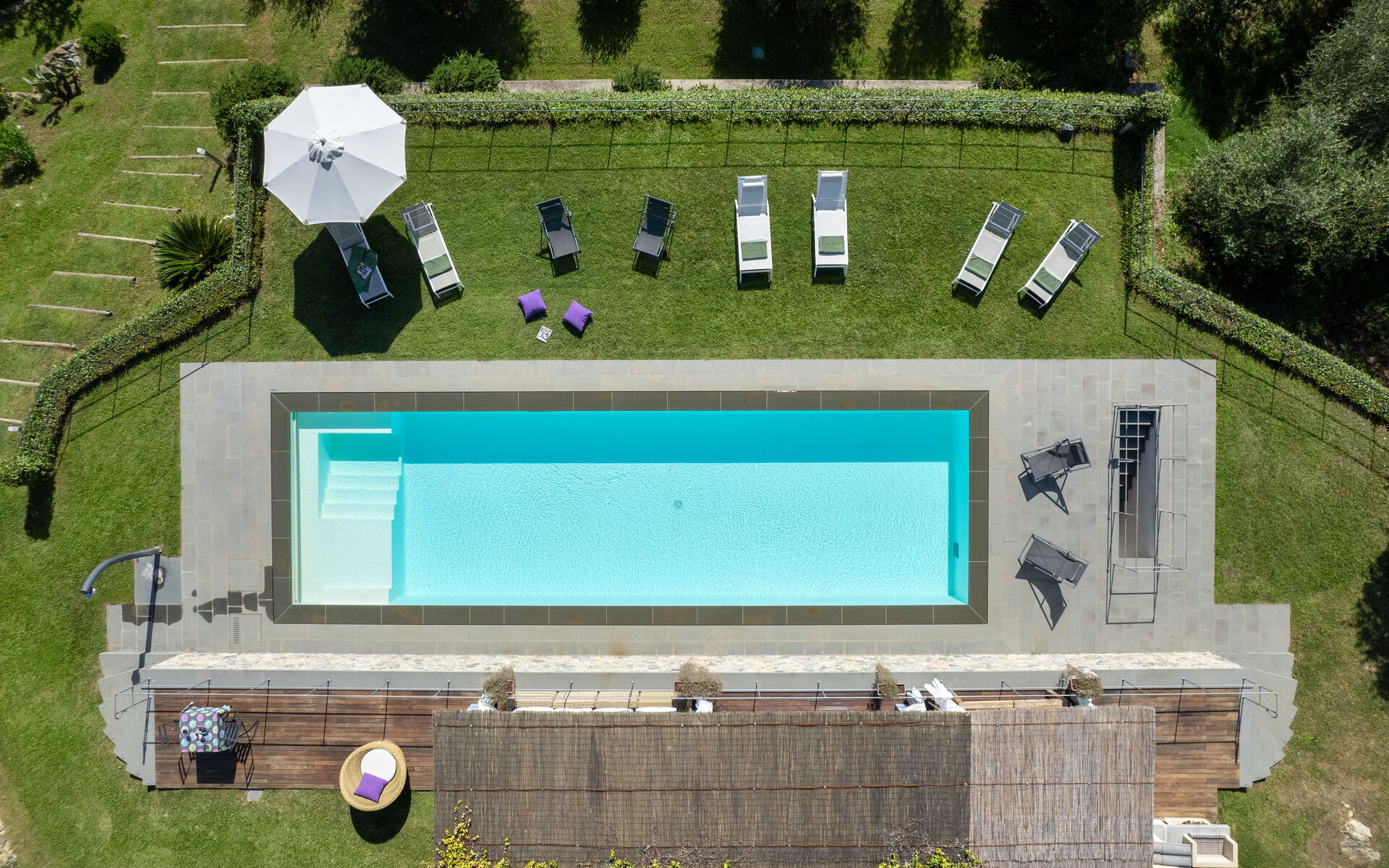 Si consiglia anche di visitare il centro storico di Camaiore, le città d'arte di Pisa e Lucca e la cittadina di Pietrasanta, famosa per le sue mostre d'arte e le opere di un noto artista di fama internazionale. È importante notare che a circa 50 metri dalla villa si trova un annesso separato a disposizione esclusiva dei proprietari, garantendo la privacy agli ospiti della villa.