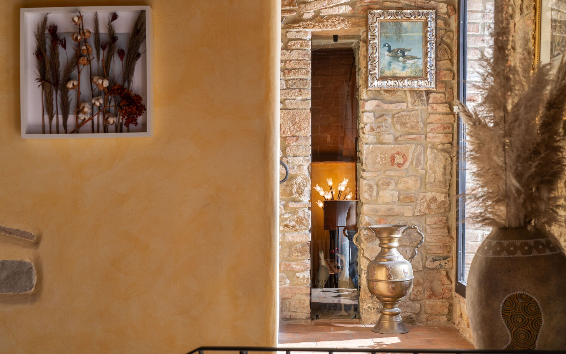 La casa è disposta su due piani e presenta un arredamento curato nei dettagli con mobili d’epoca.