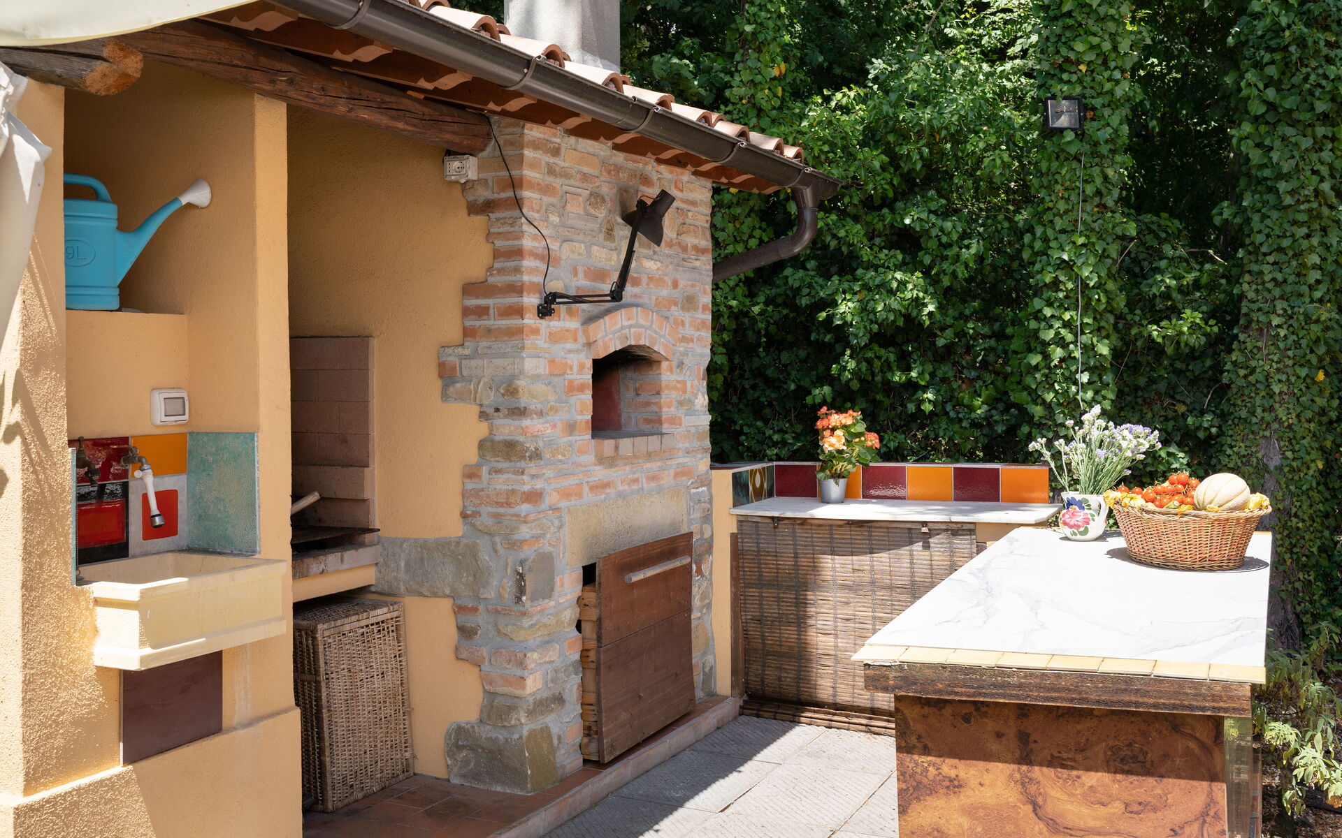 A disposizione degli ospiti troviamo un bel giardino attrezzato con piscina recintata a forma di otto (8 m x4,60; h 1,30) e vasca idromassaggio esterna da 6 posti. E’ inoltre presente un bel gazebo con tavolo e sedie per mangiare all’aperto con barbecue e forno a legna.