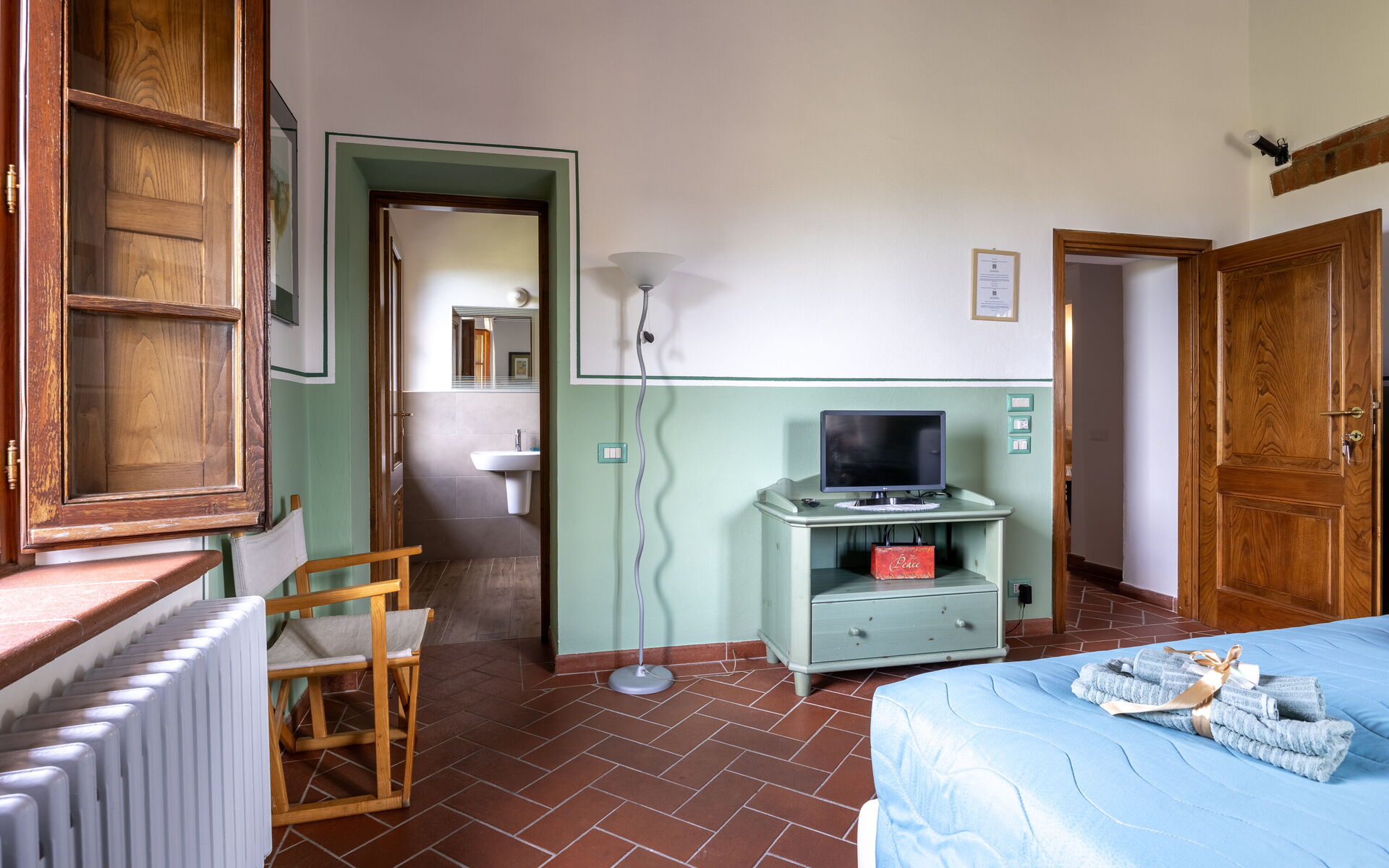 Aria condizionata, Asciugacapelli, Bidet, Doccia, Internet WiFi, Lavandino, Letto matrimoniale, Televisione, WC, Frigo