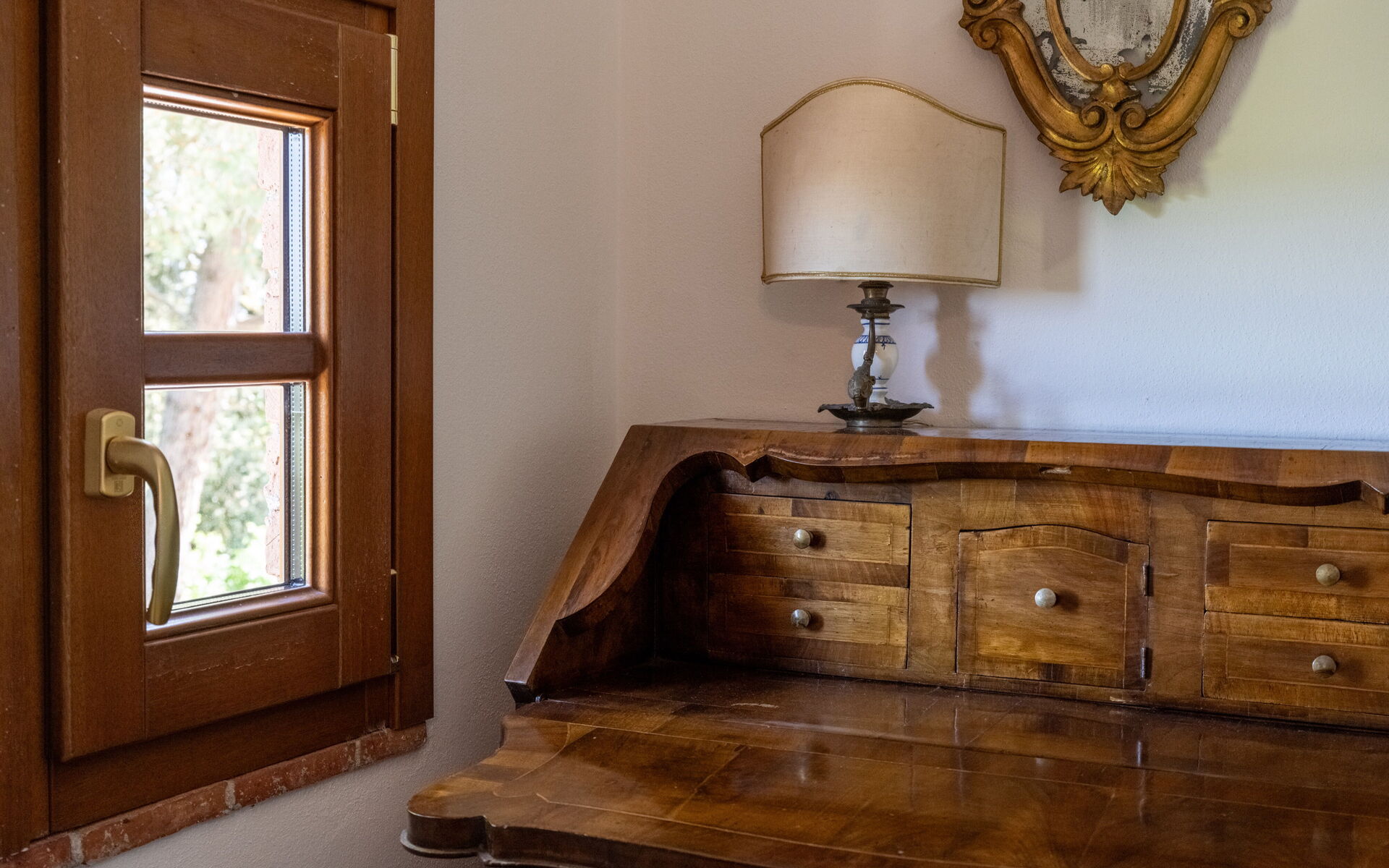 All'interno: Soggiorno con divano letto matrimoniale su richiesta, cucina in autentico stile toscano è completamente attrezzata con piano cottura a induzione, forno tradizionale, lavastoviglie, microonde e frigorifero.