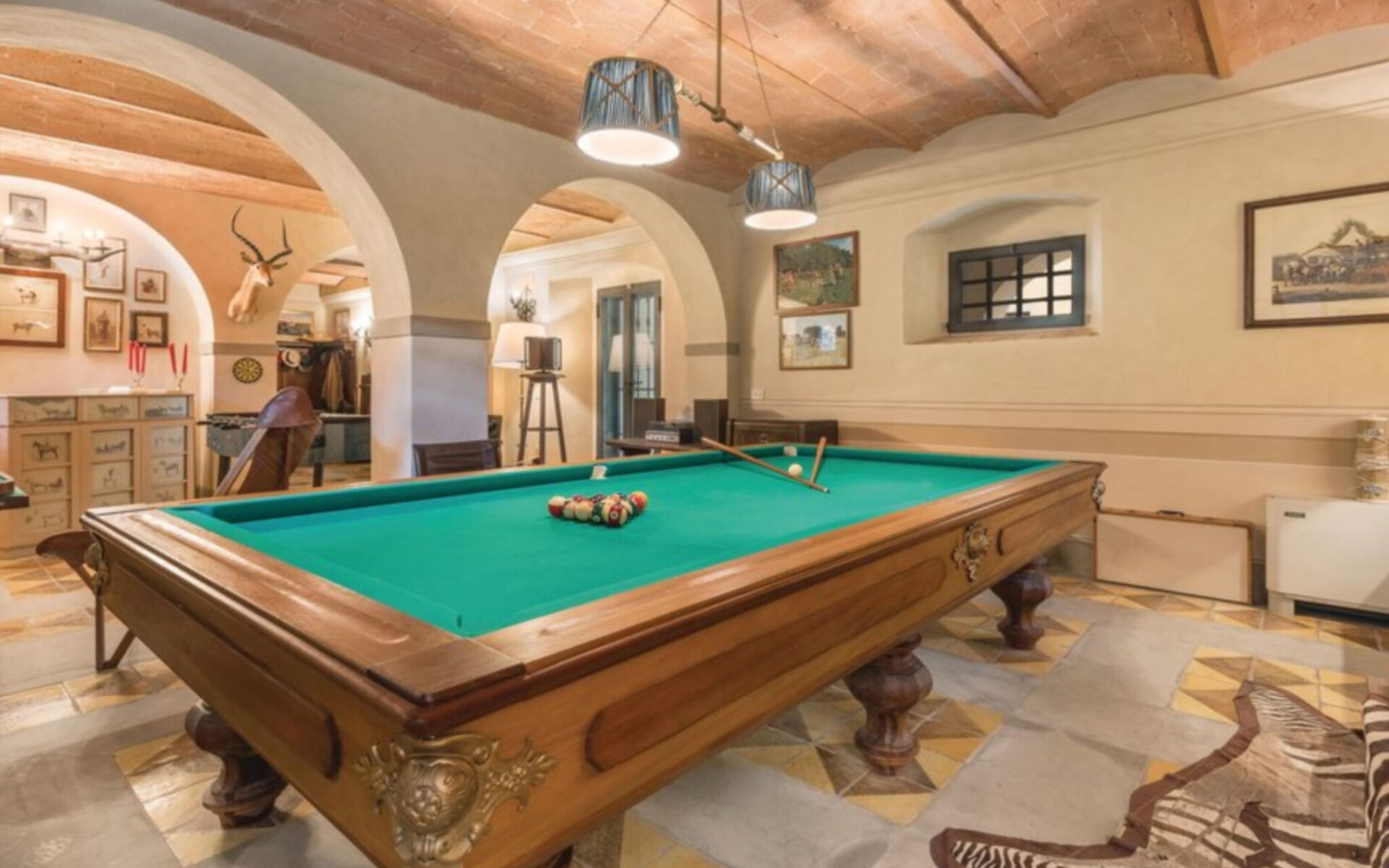 Al piano terra: ingresso; sala giochi; sala biliardo; loggia coperta.