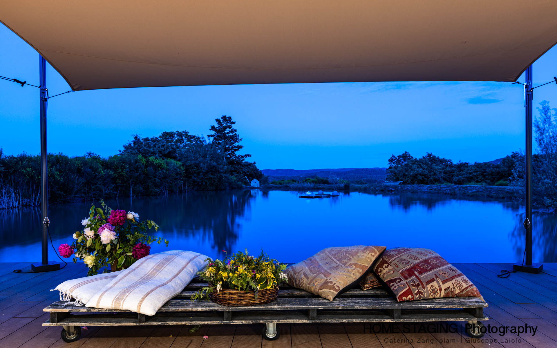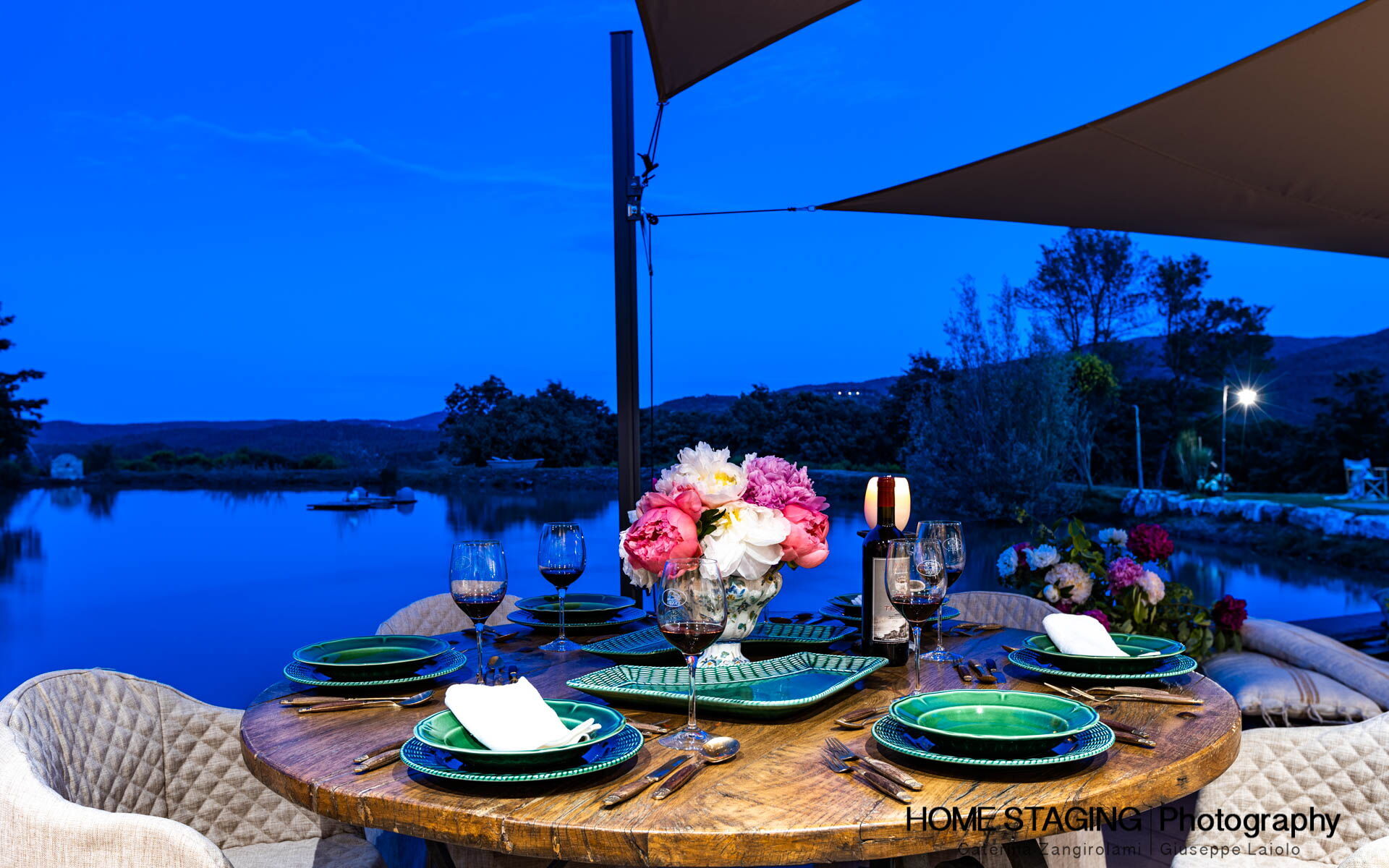 Il giardino che incornicia la villa si estende per circa 4000 mq, è molto ben curato, per la sua gran parte a prato, ospita alte piante di ginestra che fanno da padrone circondando il laghetto naturale di fronte alla zona pranzo esterna e alla piscina. Il laghetto, la cui profondità al centro raggiunge i 2,5 m, non é balneabile. L'atmosfera è silenziosa, rilassante e riservata. La zona pranzo esterna è riparata da ampie vele che coprono tutta l’area dove sono presenti il tavolo, le sedie ed un barbecue professionale, perfetta per pranzi e cene all'aperto. Personalizza la villa 10 ettari di terreno per la gran parte disponibili per le lunghe cavalcate nella bellissima cornice toscana, un luogo destinato al ristoro del corpo e dello spirito.