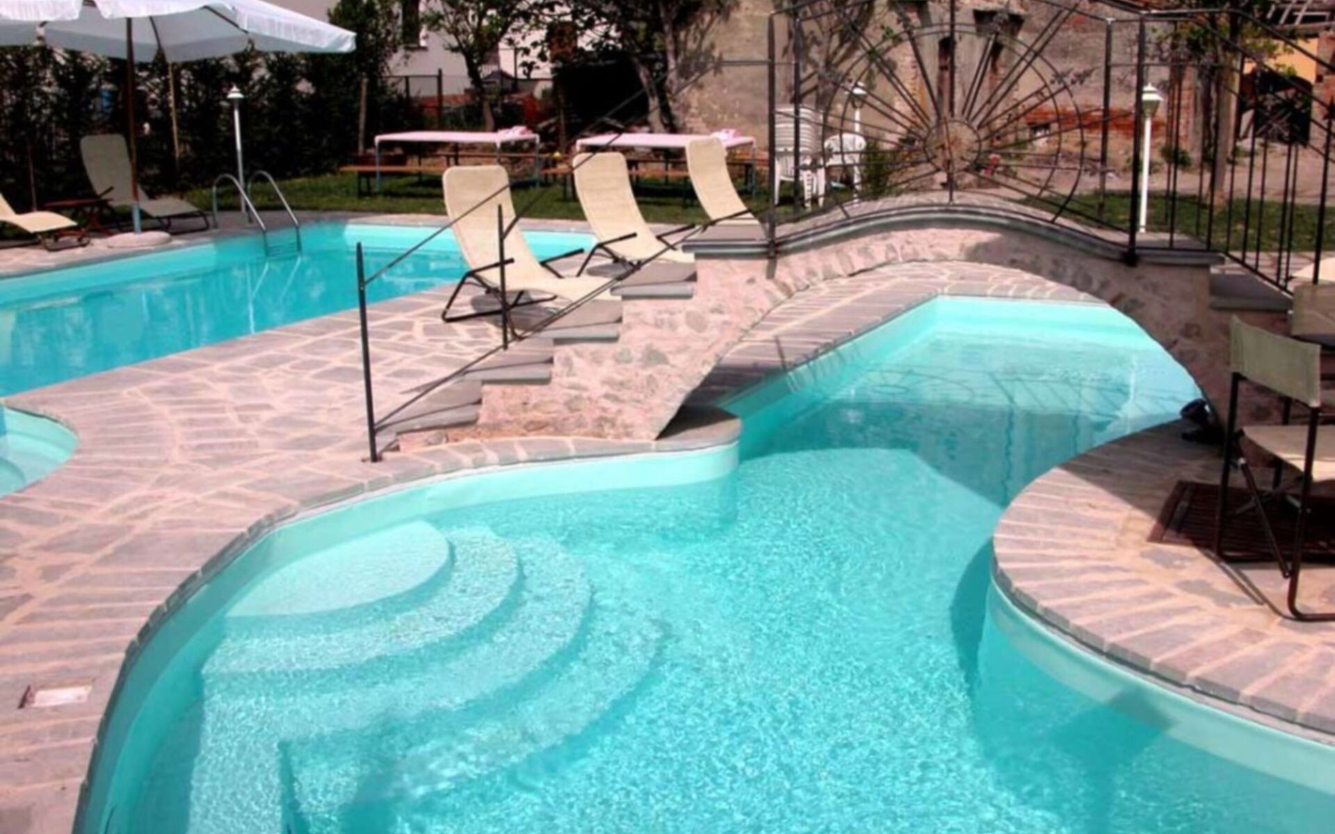 La proprietà è particolarmente adatta ai bambini, possono giocare in sicurezza sia in piscina che nel parco. Possono giocare in tranquillità: parco di circa 3000 mq completamente recintato; Area piscina chiusa; Piscina per bambini con profondità da 20 cm a 80 cm a livello graduale con jumper;