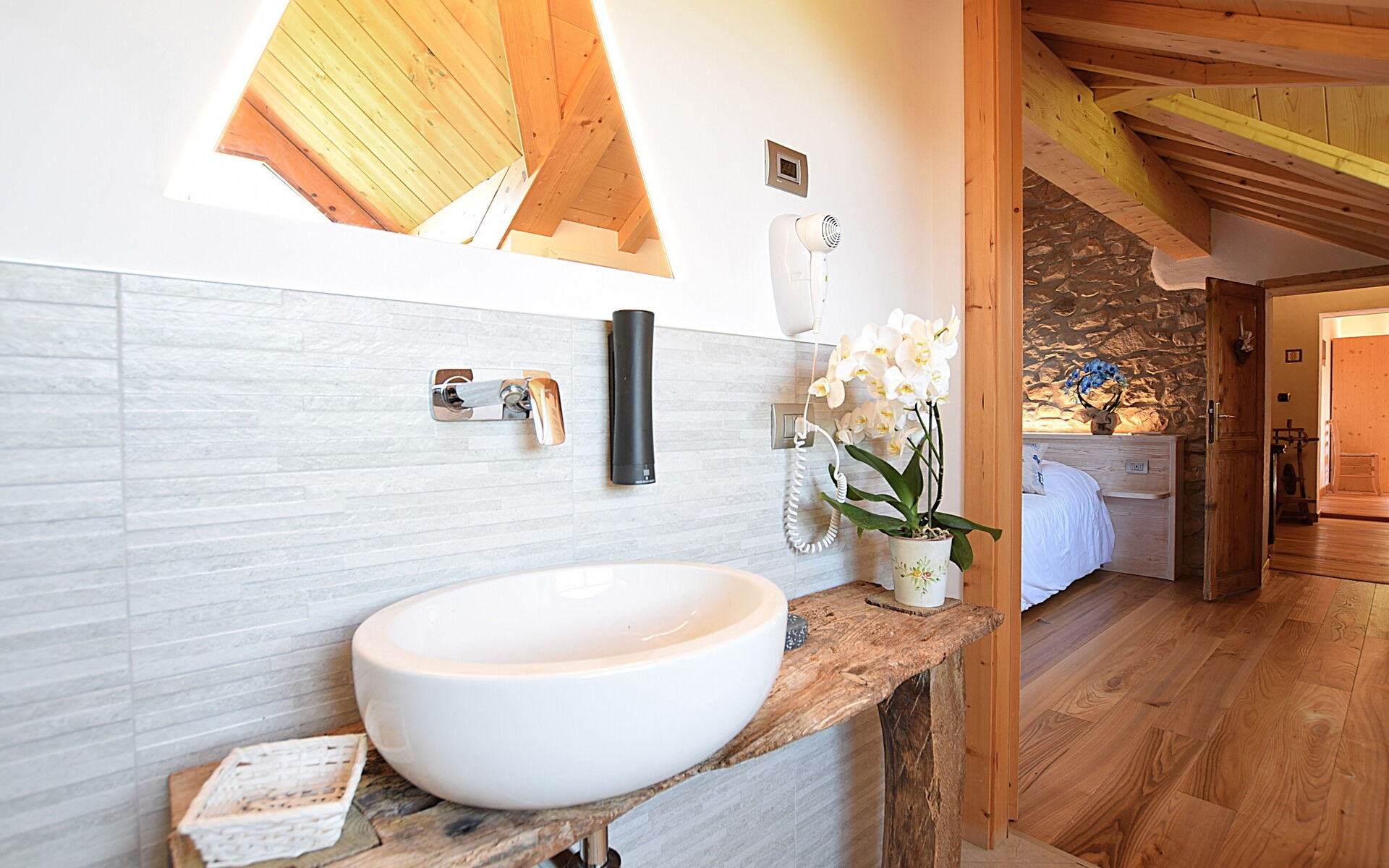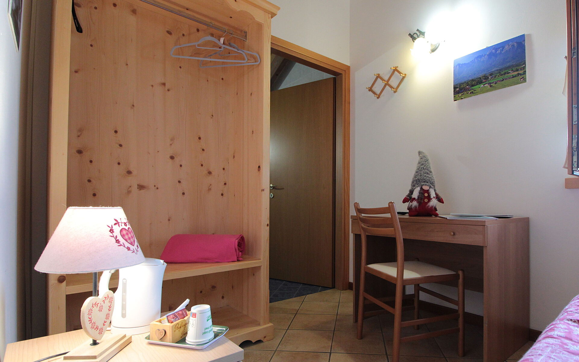 La baita può ospitare da un massimo di 16 persone (8 camere doppie) ad un minimo di 8 persone (4 camere doppie) ed in entrambi i casi gli ospiti avranno tutta la struttura solo per sé. Non sono previste camere singole, per prenotazioni di 8 persone verranno chiuse le camere in più. Inclusa la colazione al mattino e, qualora lo desiderassero, anche la possibilità di concordare in loco con la proprietaria la cena a pagamento, in quanto non è presente la cucina ma una sala da pranzo che verrà aperta solo in base alle richieste degli ospiti. Solo il centro benessere, con sauna finlandese, bagno di fieno e la tinozza riscaldata all’esterno saranno in condivisione con gli ospiti di Baita Tersilia.