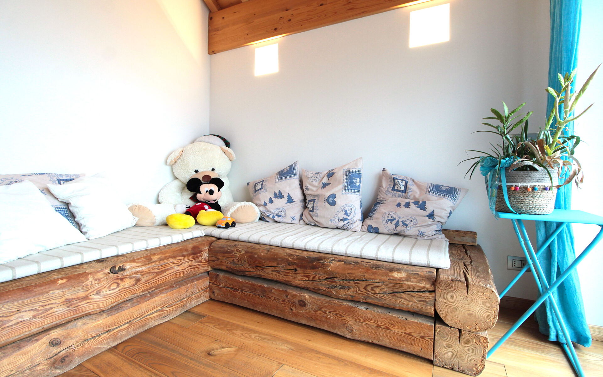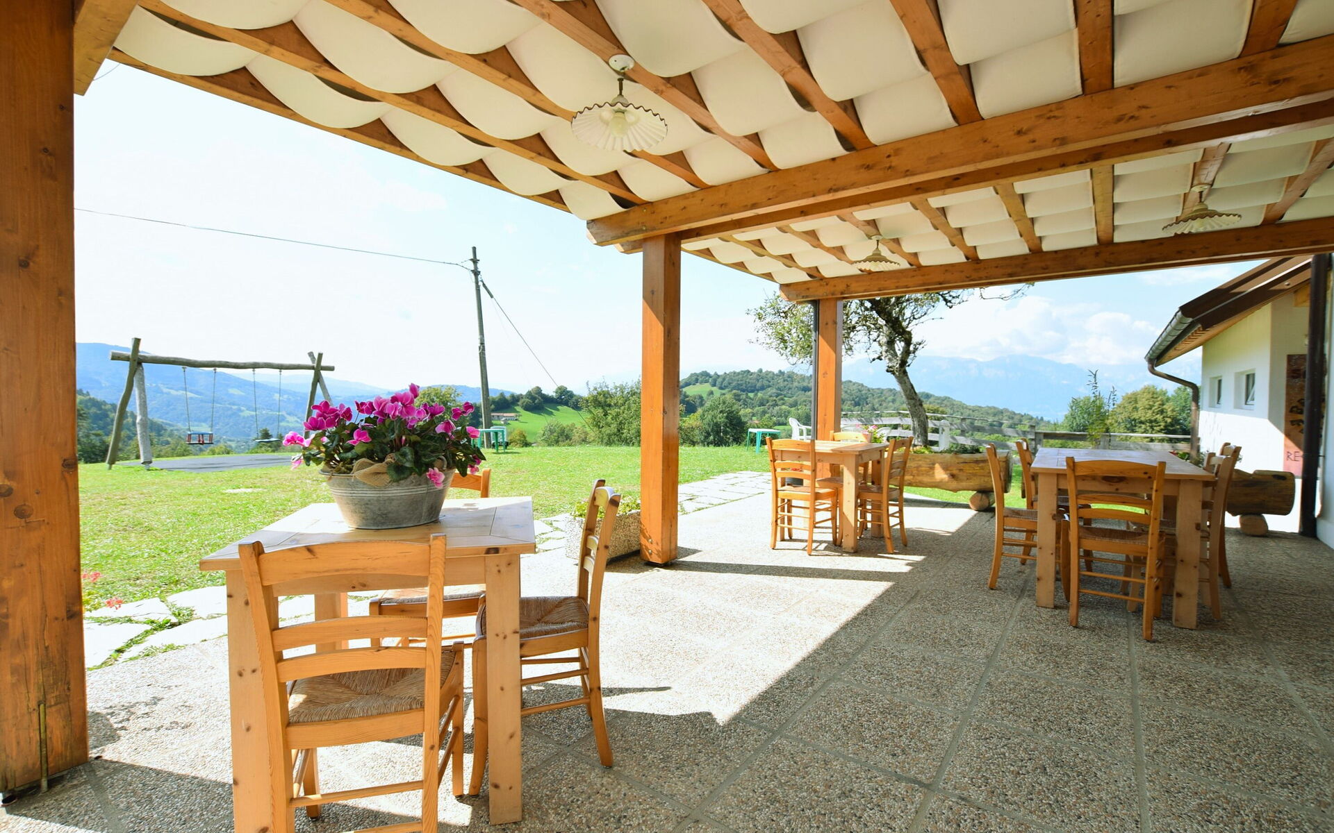 Gli ospiti della baita avranno ad uso esclusivo il giardino, la splendida terrazza che si affaccia sulle Dolomiti, dove prendere il sole nelle giornate più calde e una saletta relax. In condivisione l'area giochi con altalena.