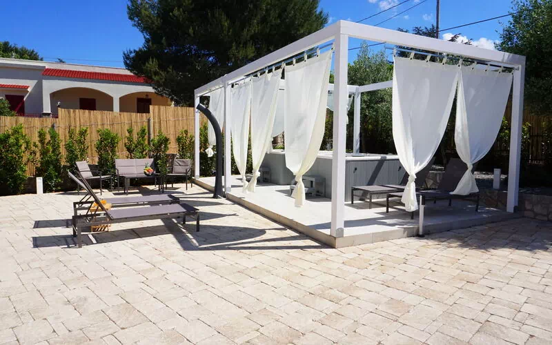 The two Jacuzzis are equipped with Bluetooth speakers so you can listen to your favourite music and relax during the Jacuzzi. Access to the property is through a driveway gate, guaranteeing the possibility of parking your car insideDistant only a few minutes by car from Selva di Fasano, where there is the famous Zoo Safari. Only 6 minutes away is the centre of Locorotondo, the musical capital of the Itria Valley.