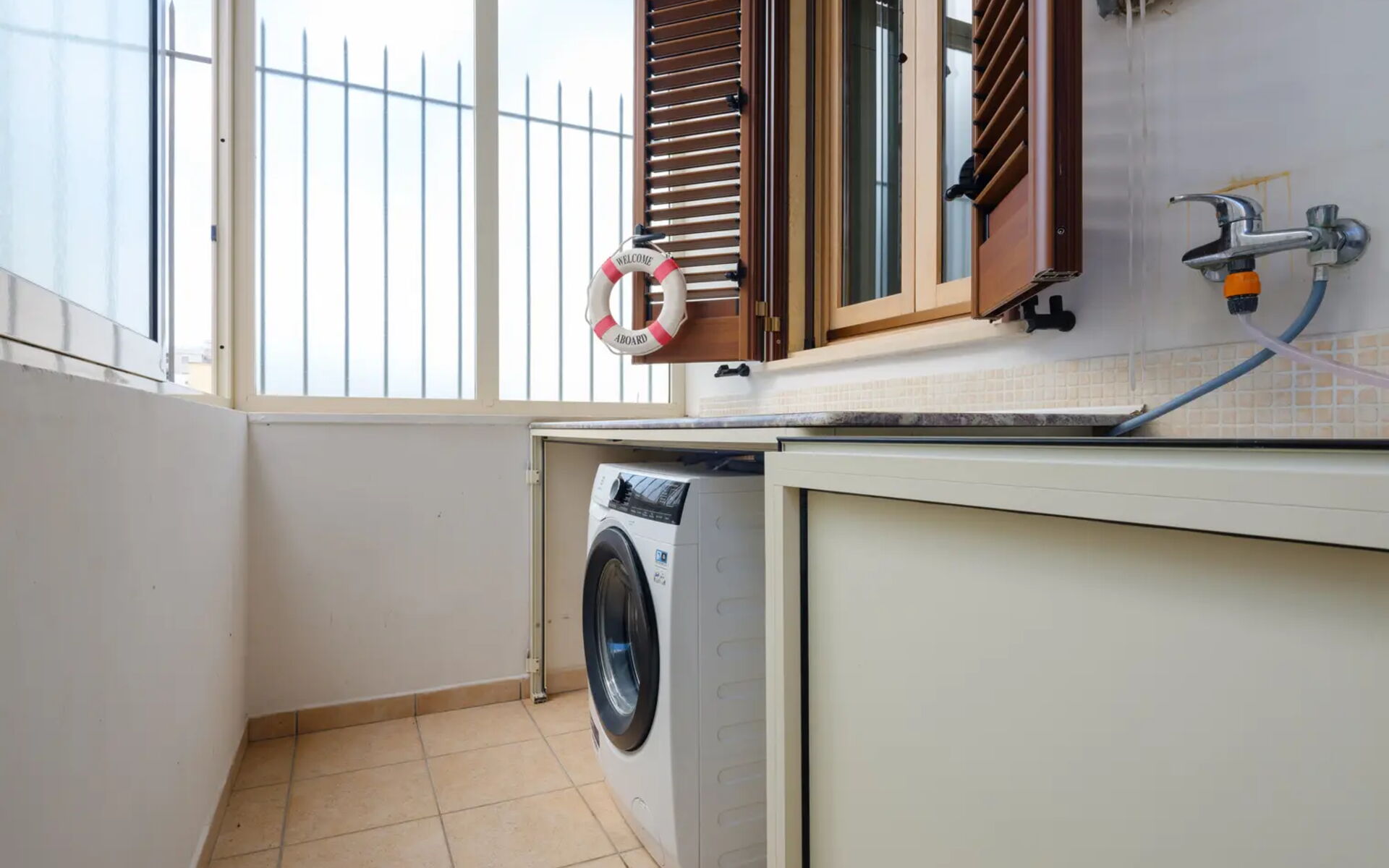 Armoured windows with mosquito nets and soundproofed glass guarantee maximum security and privacy. The flat is completed by an outdoor laundry area and a wonderful sea-view balcony.