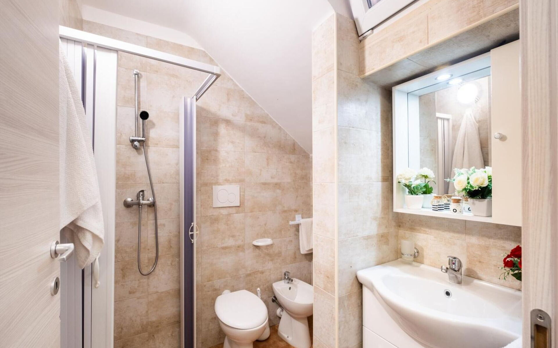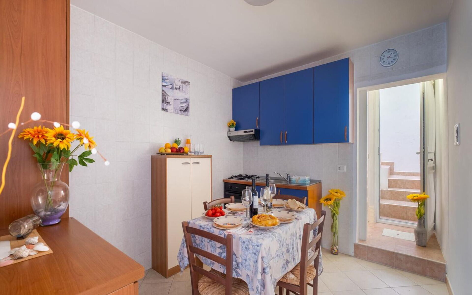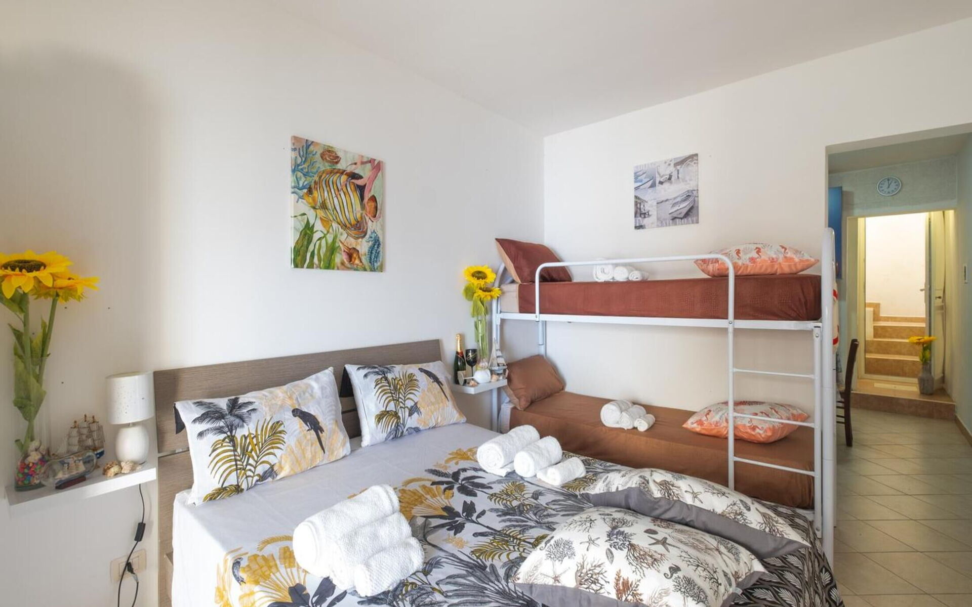 Cosy maritime-style interior with fine finishes, the spaces are divided into a double bedroom. Large living area where an additional cot can be added. Fully equipped kitchen with fridge, oven and TV. Large bathroom with shower and bidet. Air conditioning and wifi available.