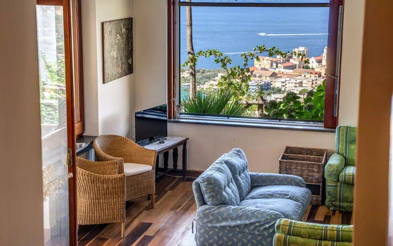 The villa is surrounded by Mediterranean gardens, with fruit trees, vegetables and a private swimming pool. Located close to Sorrento and the Amalfi Coast, it offers an oasis of peace and privacy away from the tourist hustle and bustle, with modern comforts such as Wi-Fi, air conditioning and parking for two cars.