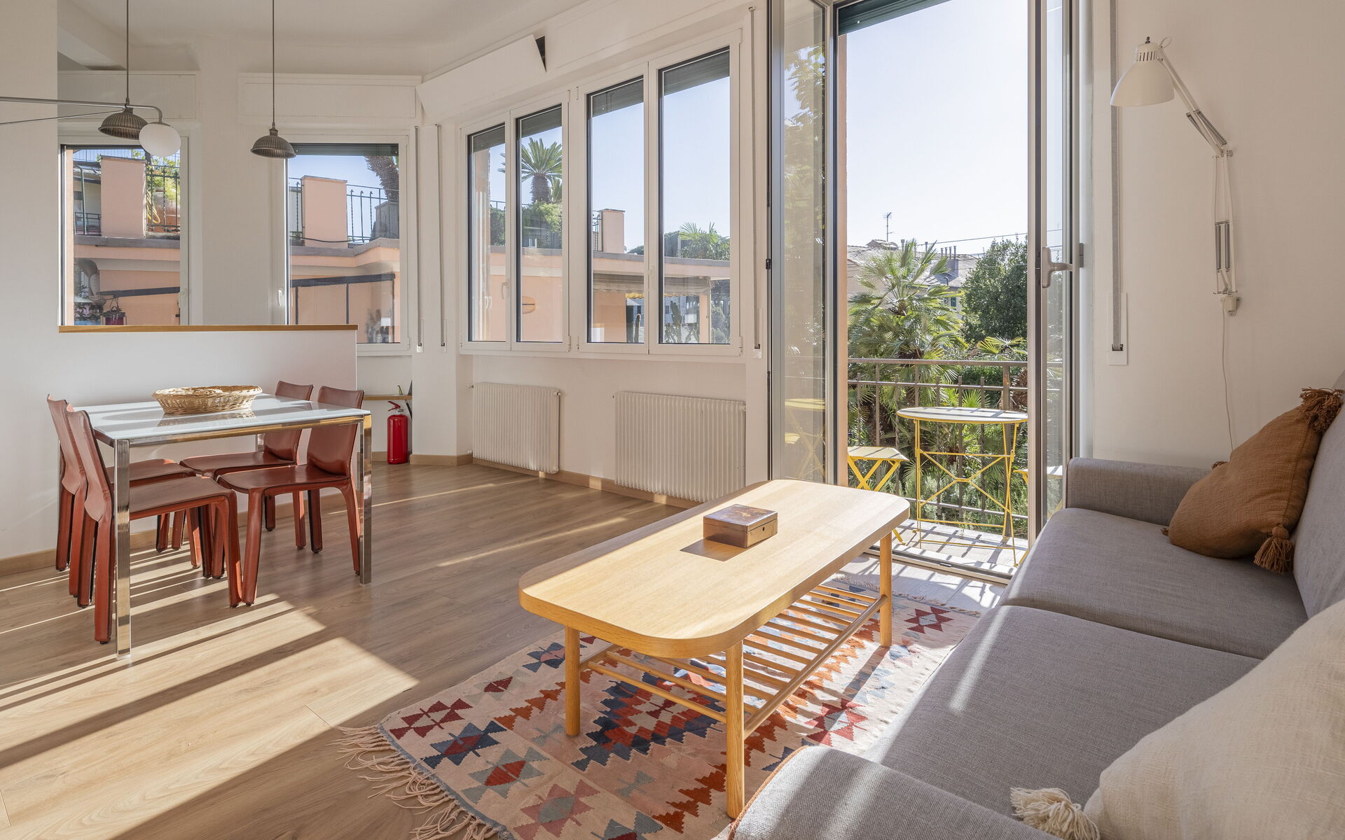 Newly renovated flat located in a quiet area, amidst greenery and within walking distance of the sea. The space is bright, well furnished with air conditioning, wifi and private parking.