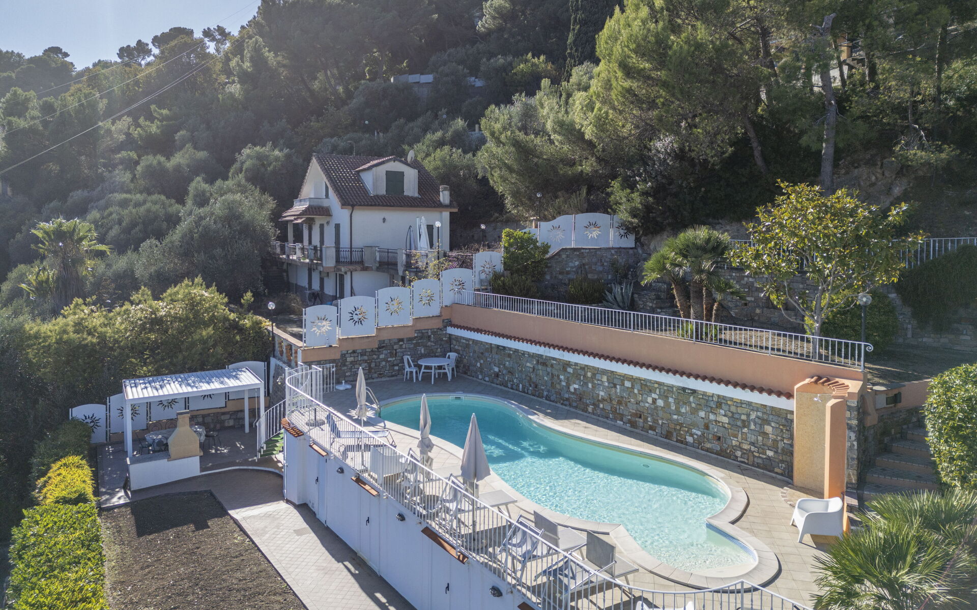 Located in a quiet area, just 10 minutes by car from the beaches of Imperia, the villa is a strategic base for seaside walks and for discovering charming Ligurian villages such as Parasio, Dolcedo, Lucinasco and Borgomaro. Also ideal for trekking lovers, with scenic trails through olive groves, dry-stone walls and panoramic countryside.