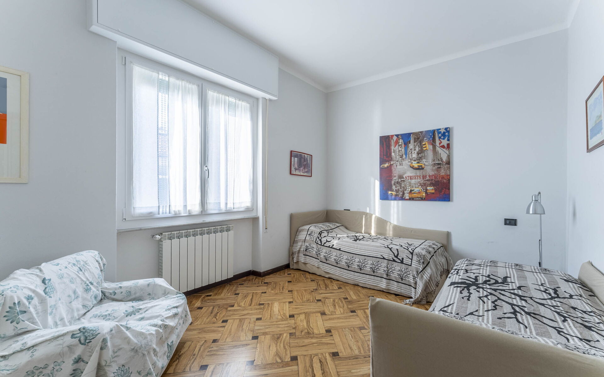 Entering there is an eat-in kitchen equipped with dishwasher, oven, kettle, toaster, coffee machine, with access to the two balconies. A balcony is also accessed from the living room with television and a double bedroom. There are 3 bedrooms: two doubles and one with two single beds, two bathrooms: one with shower, one with bath.