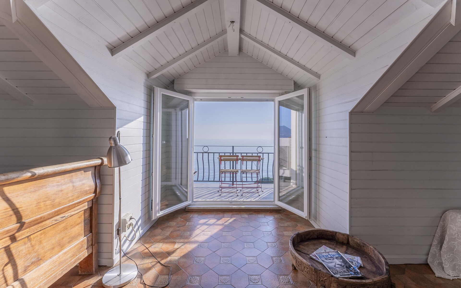 In the kitchen there is a spiral staircase leading to open space: attic with double bed and small terrace with sea view.