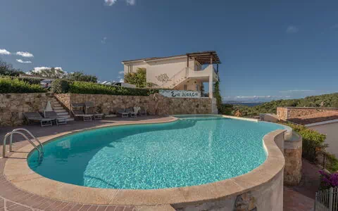 The peaceful atmosphere is complemented by the residence's splendid swimming pool and panoramic areas offering breathtaking views of the enchanting La Maddalena archipelago and the surrounding lush hills.
