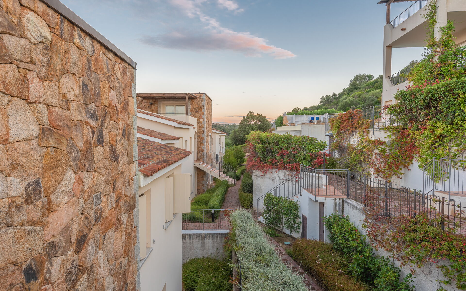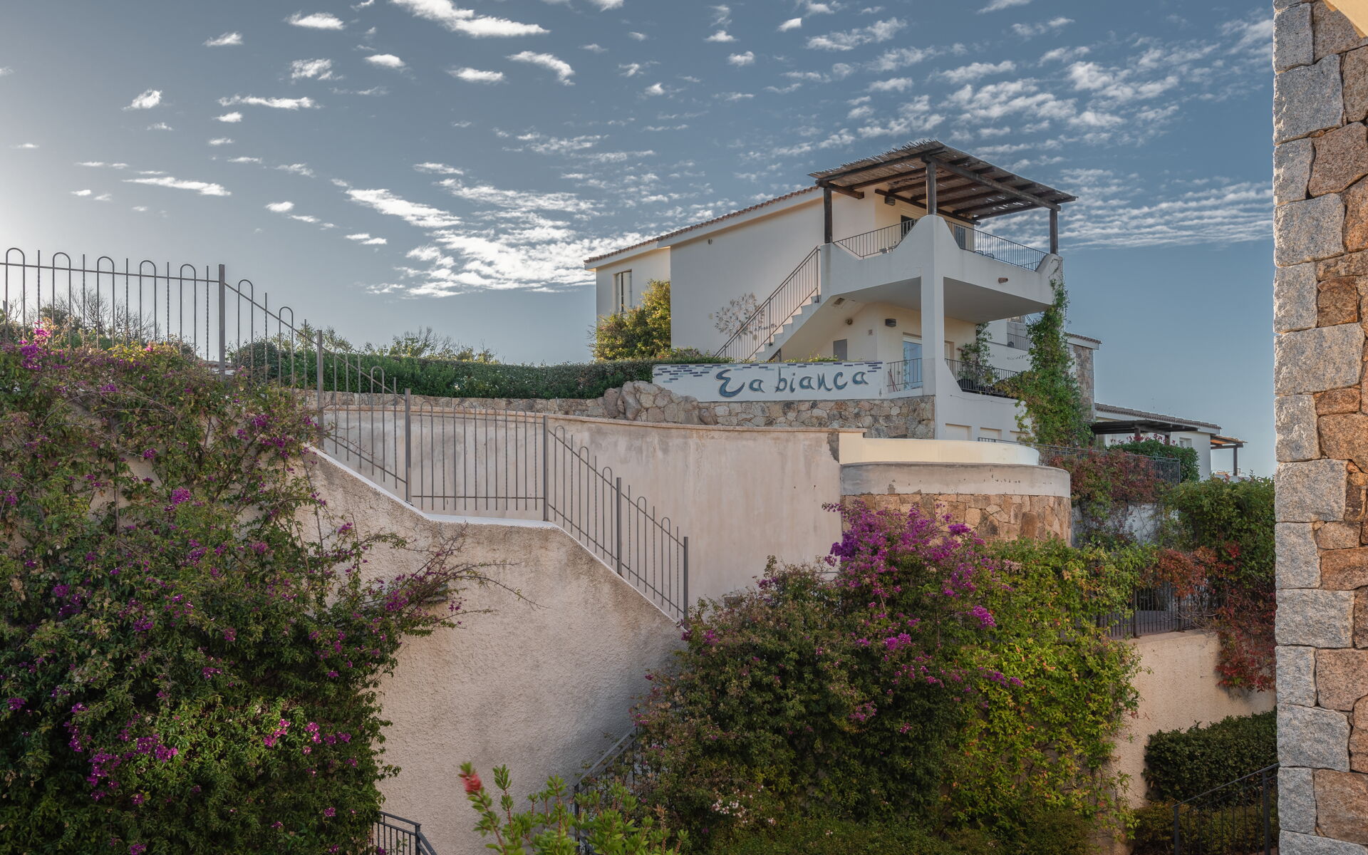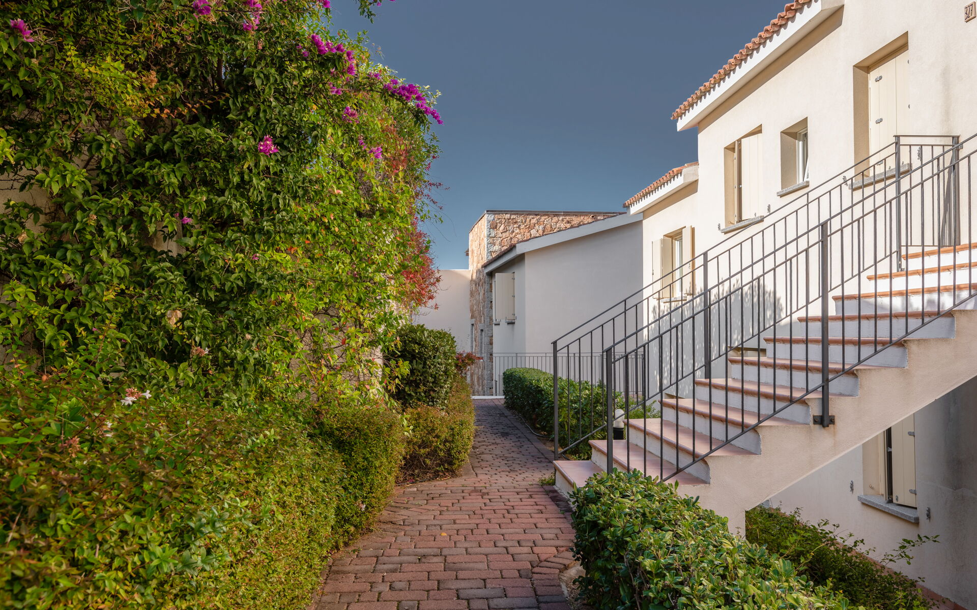 A complex surrounded by greenery in the vicinity of Baja Sardinia, from where one can enjoy a splendid panorama and the proximity to the town allows one to take advantage of the shopping opportunities, inserted a strategic starting point for excursions to Porto Cervo, Porto Rotondo and many other localities in the surroundings.
