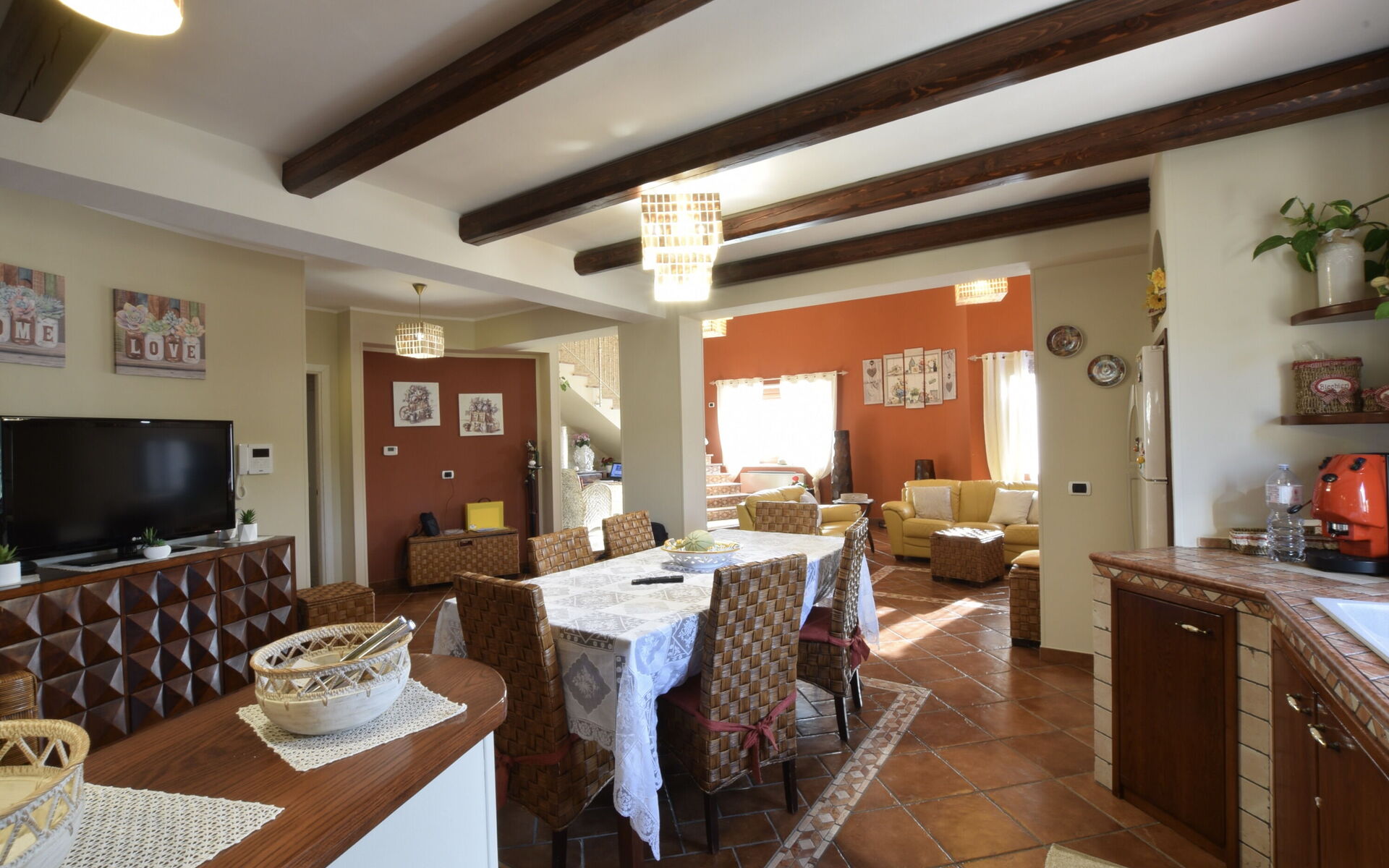 Air Conditioning, Well Equipped Kitchen, Oven, Freezer, Fridge, WiFi Internet, Dishwasher, Italian Coffee Machine, Stove Top, Dining Table, Television, Exit to the garden, Exit to the patio, Sofa, Fireplace, Working Desk, Television