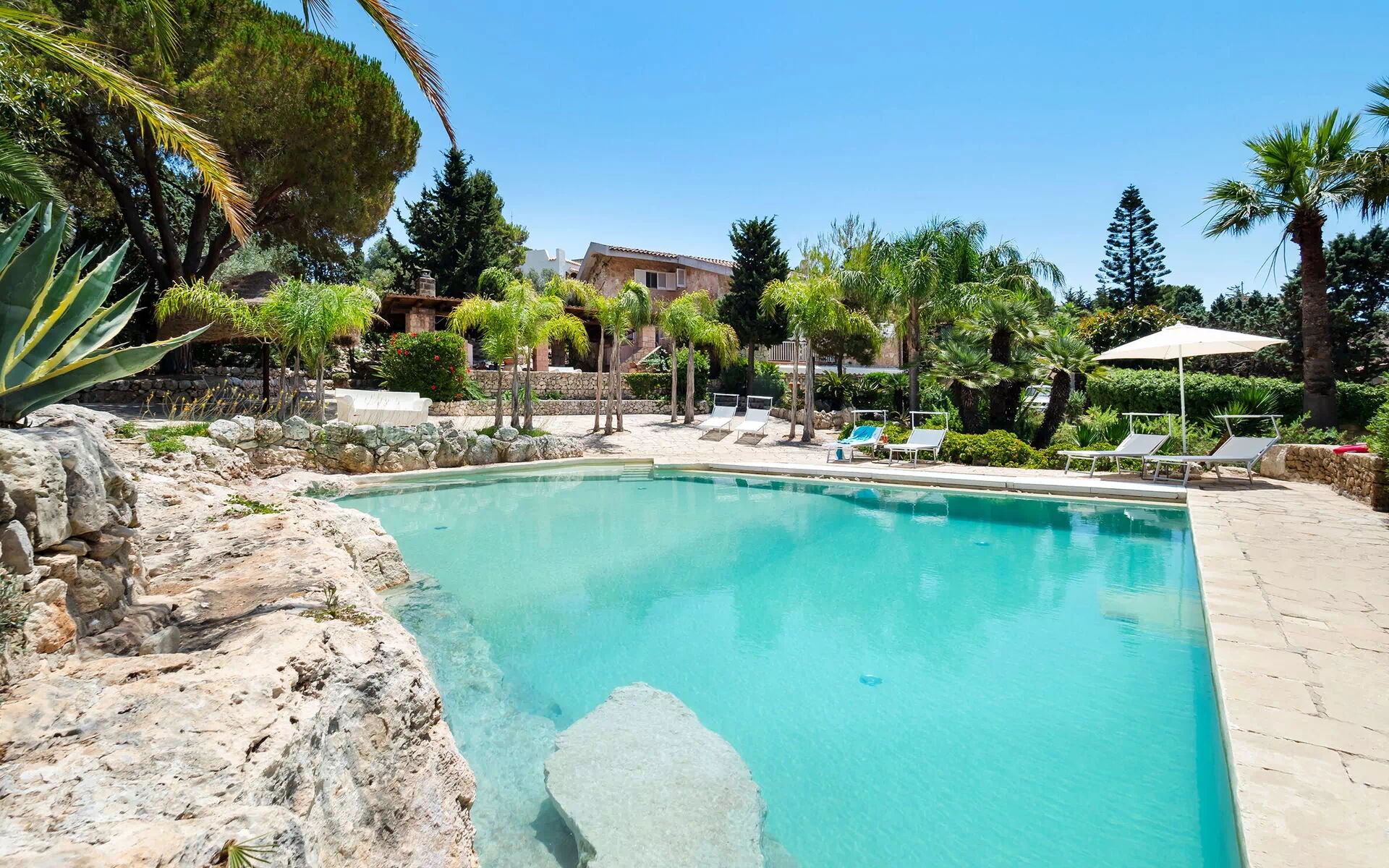 Laundry, terraces, loggia with outdoor kitchen, barbecue and dining area, garden, swimming pool, solarium.