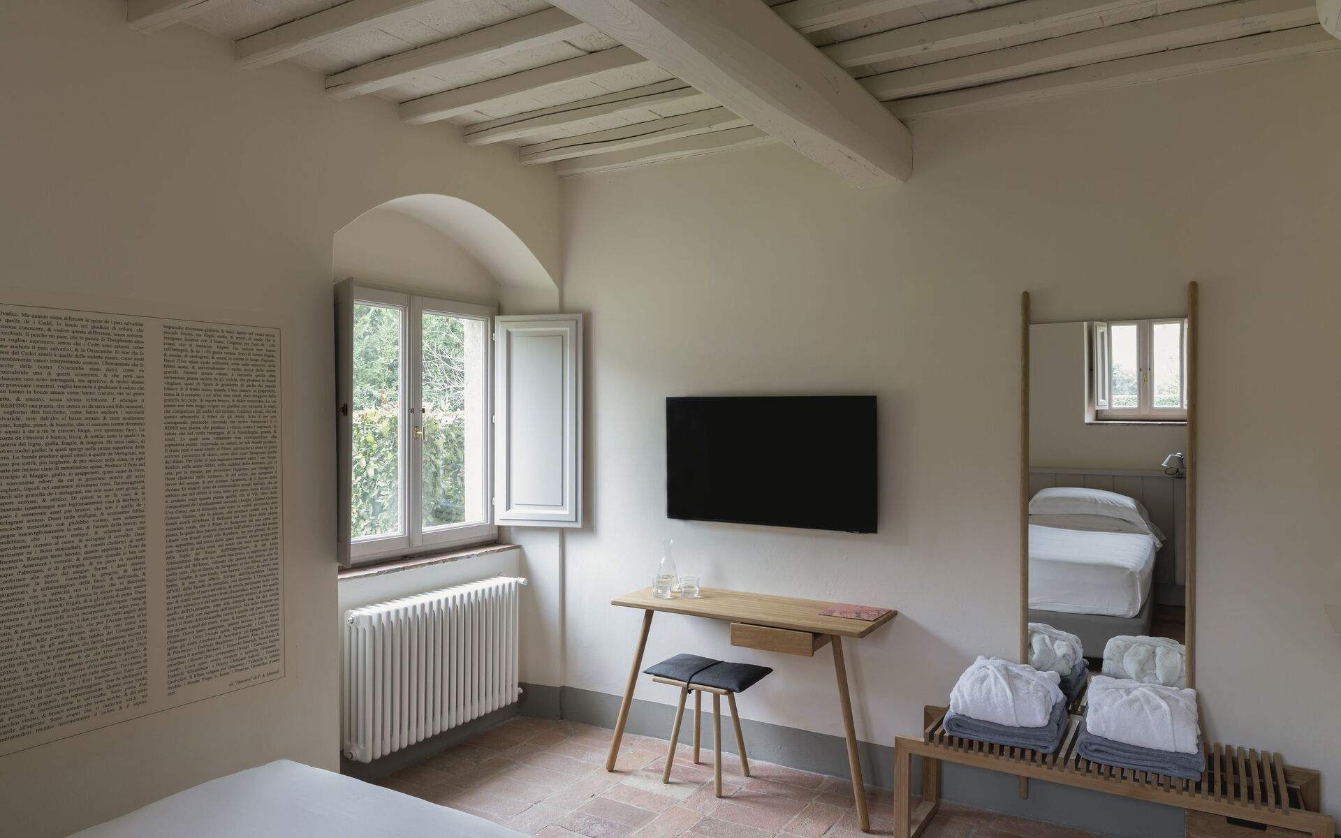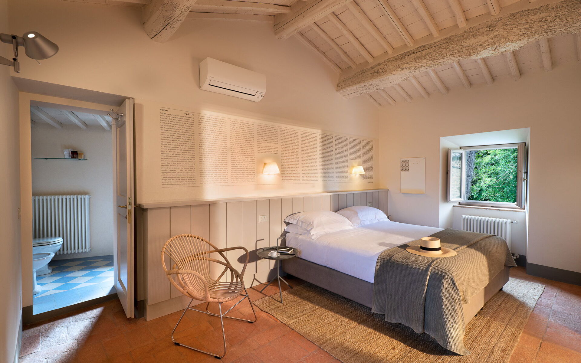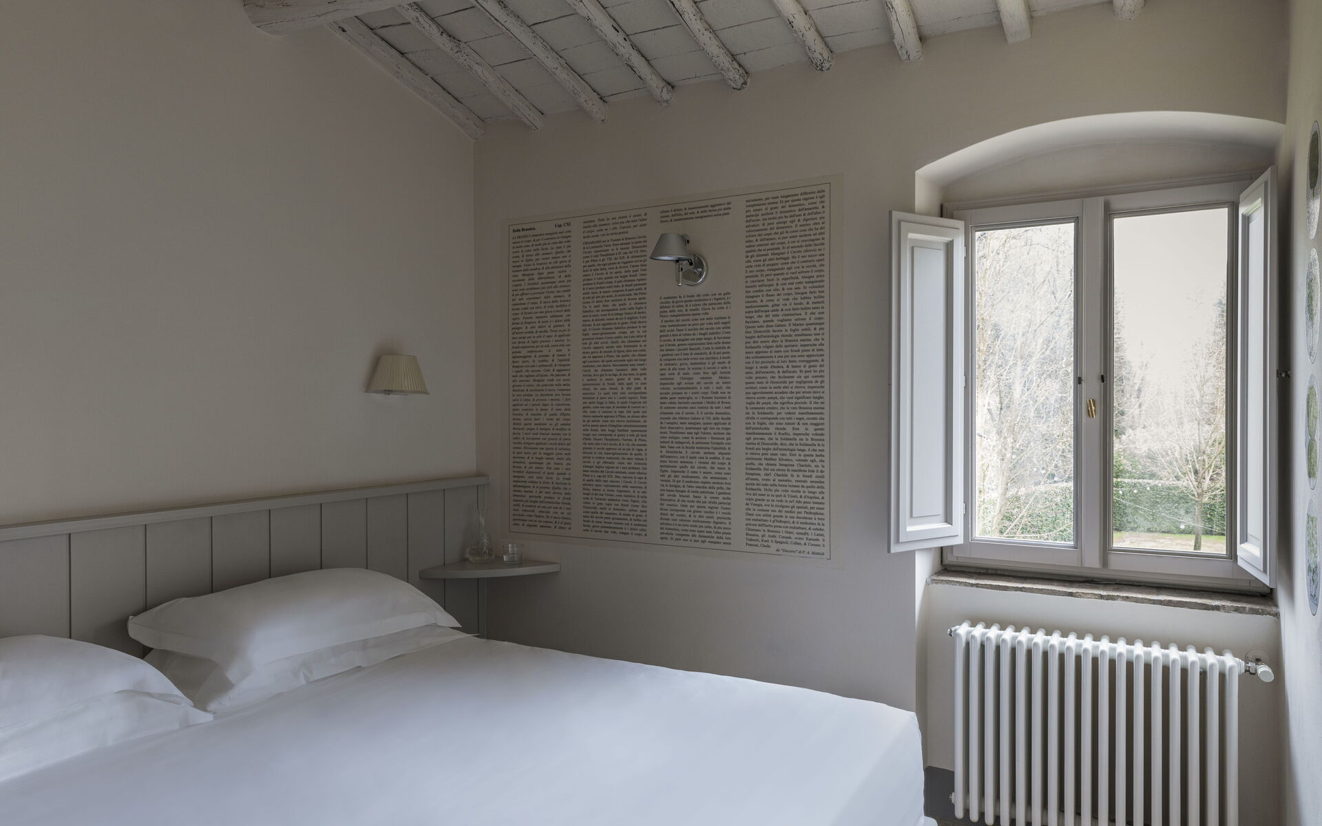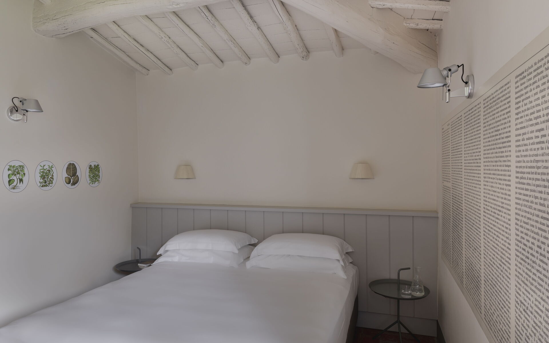 The farmhouse is divided into 4 flats with separate entrances. The accommodations are distinguished by a fresh, contemporary style, with bright rooms and Italian-designed furnishings that combine comfort and refinement. Each room is enriched with elegant graphics inspired by the botanical illustrations of the 16th-century naturalist Gherardo Cibo, creating a harmonious dialogue between art, nature and hospitality.