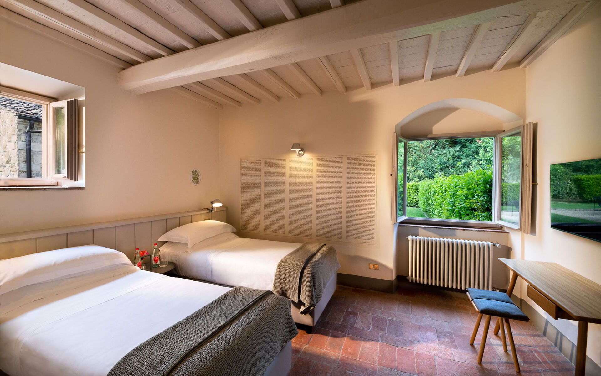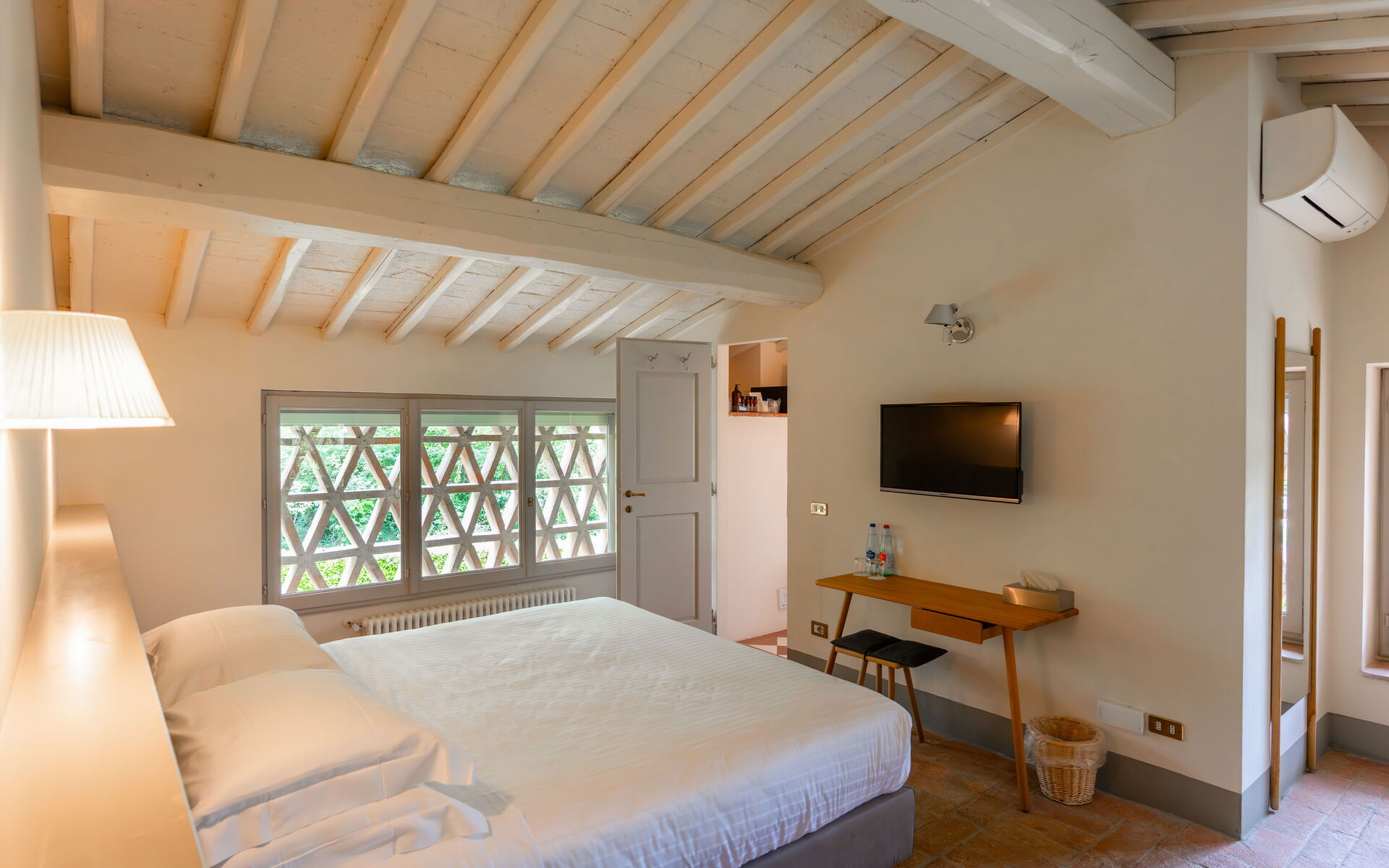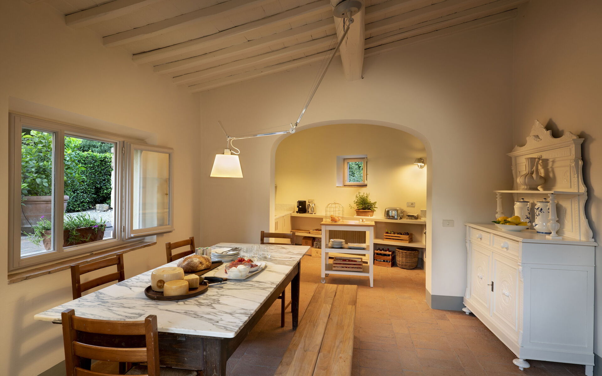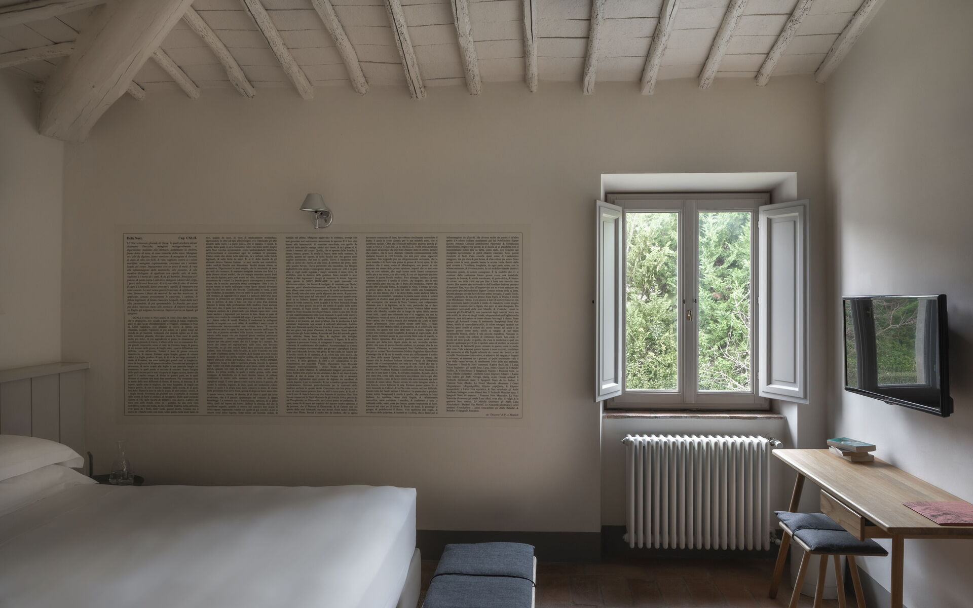 The farmhouse is divided into 4 flats with separate entrances. The accommodations are distinguished by a fresh, contemporary style, with bright rooms and Italian-designed furnishings that combine comfort and refinement. Each room is enriched with elegant graphics inspired by the botanical illustrations of the 16th-century naturalist Gherardo Cibo, creating a harmonious dialogue between art, nature and hospitality.