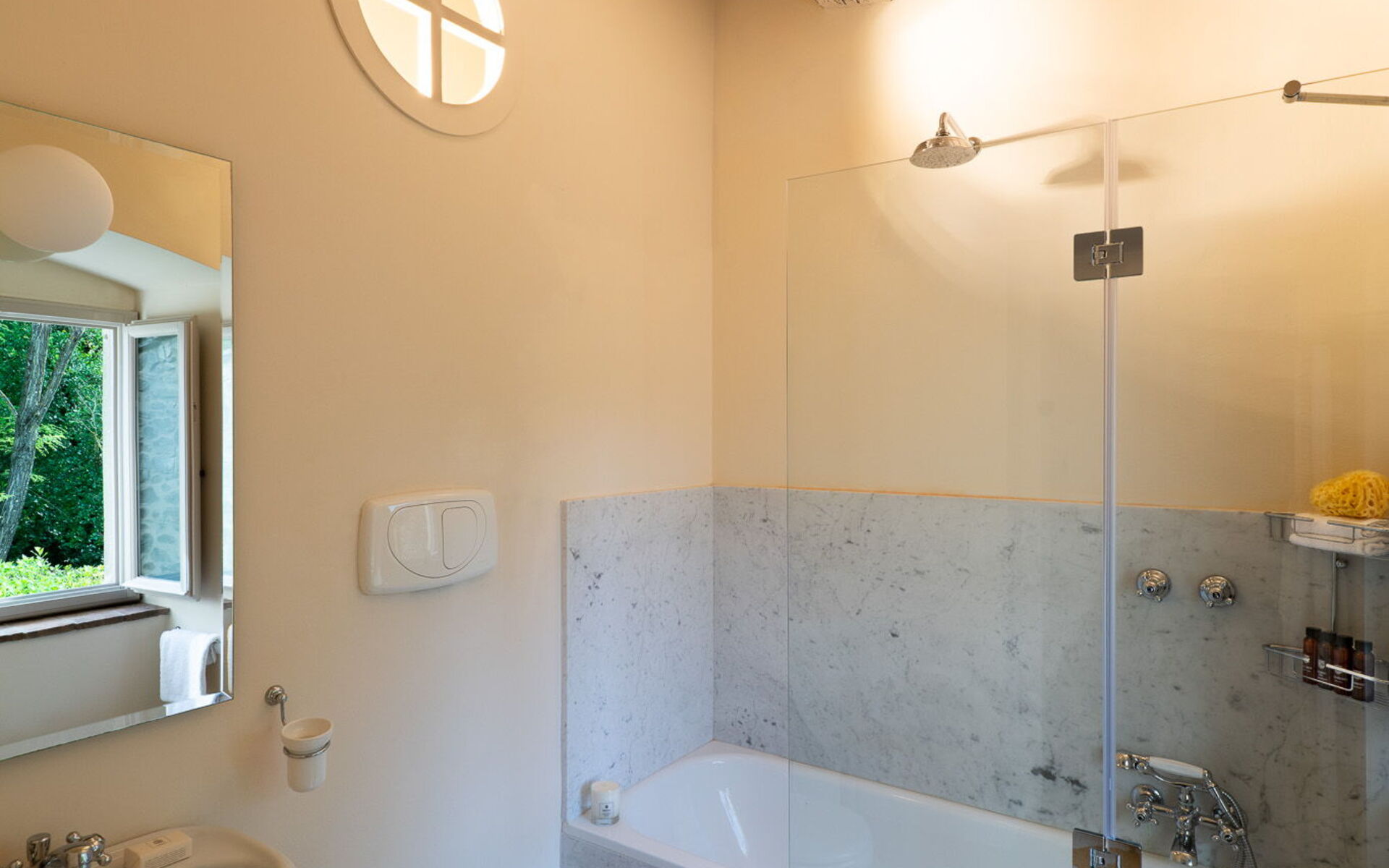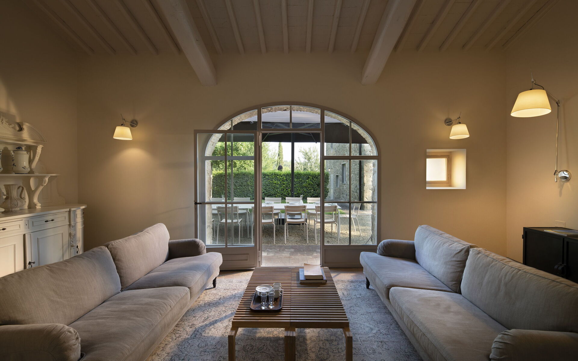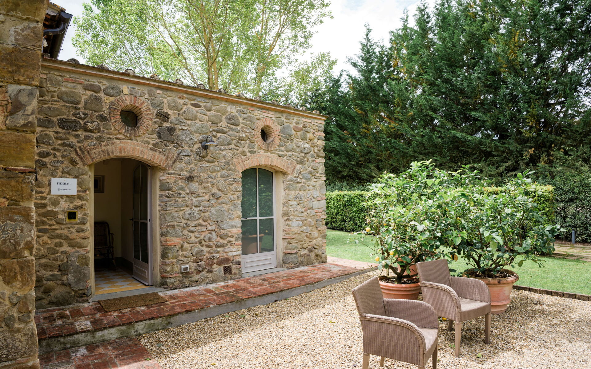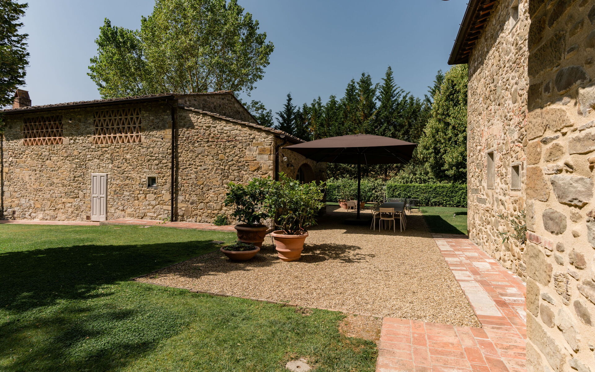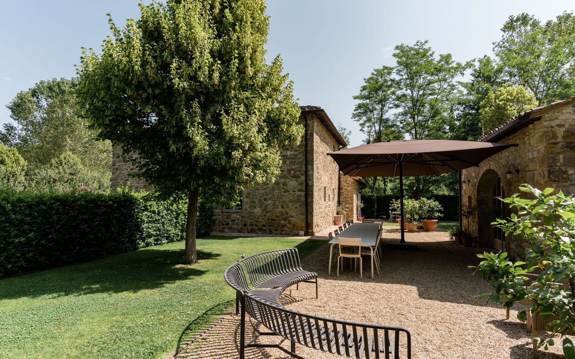 The garden is surrounded by apple and poplar trees, tall laurel trees, holm oaks and lime trees. A beautiful green lawn surrounds the stone farmhouses and leads to the swimming pool, surrounded by a solarium where you can completely relax and enjoy the sun.