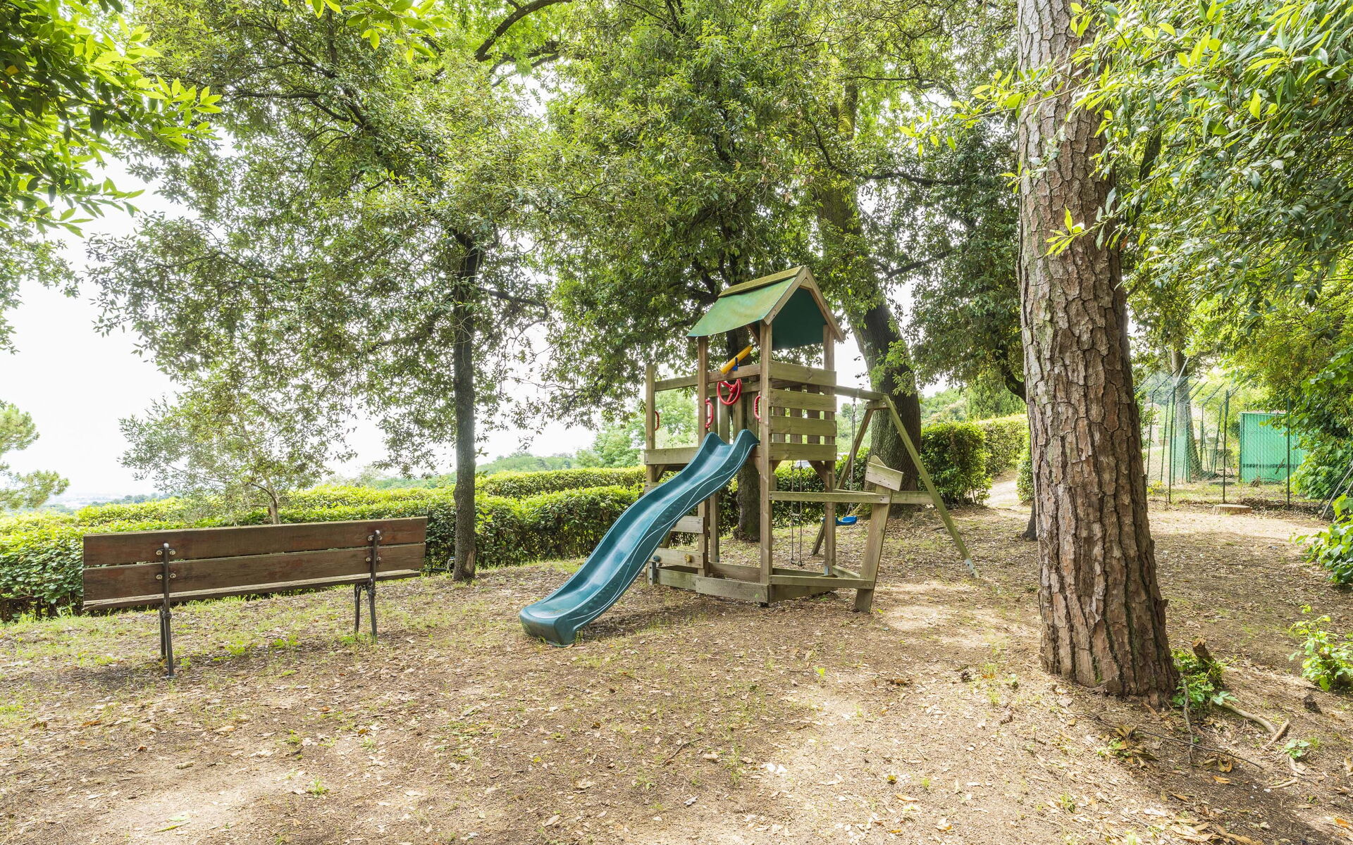 A villa immersed in the Pistoia countryside, it has a large garden with a very charming panoramic terrace equipped for outdoor dining. In the outdoor area there is a swimming pool (12x15 1.50m deep) with a view of the hills, deckchairs, a gazebo with table and chairs, a barbecue and a ping-pong table. There is also a play area for children.