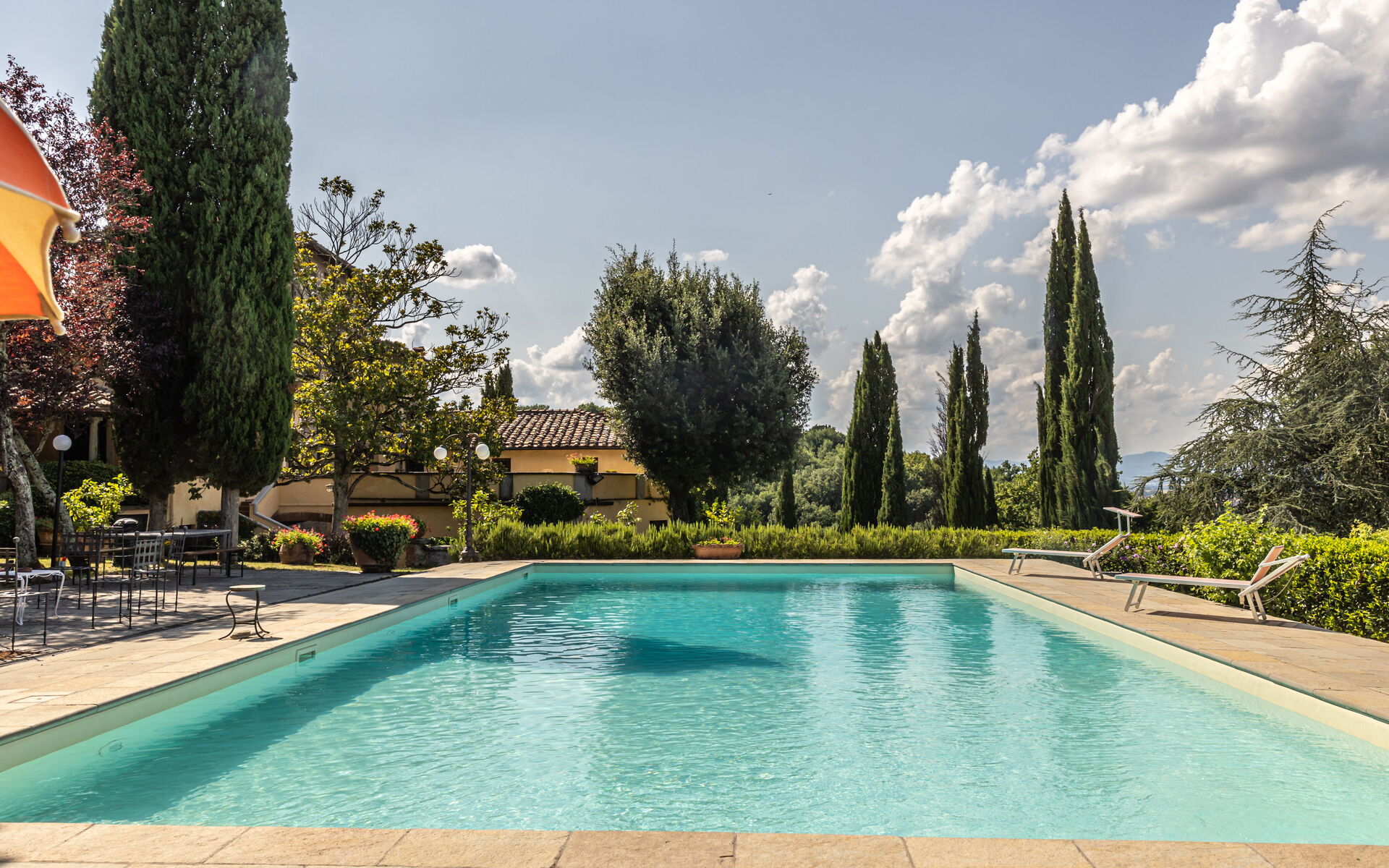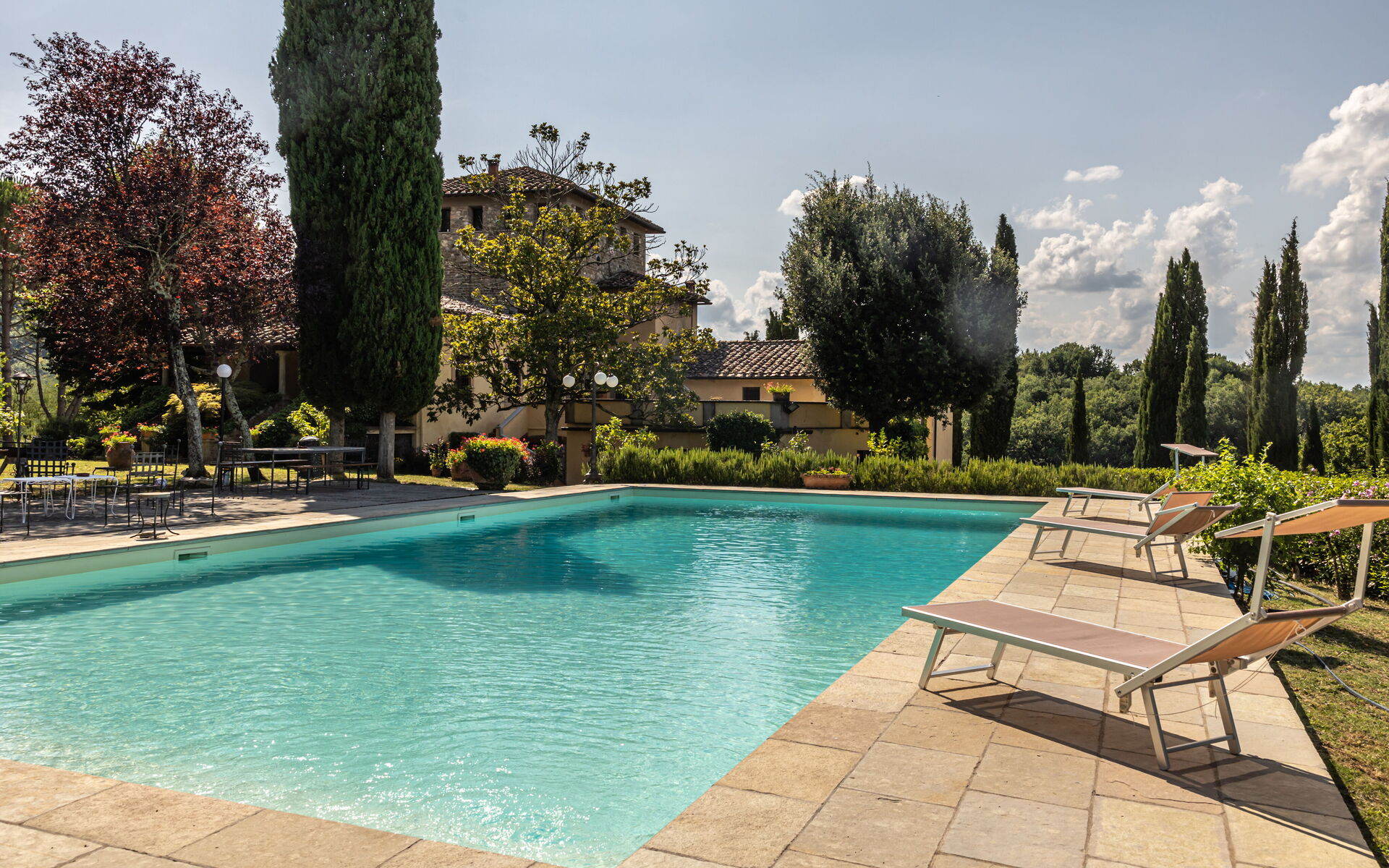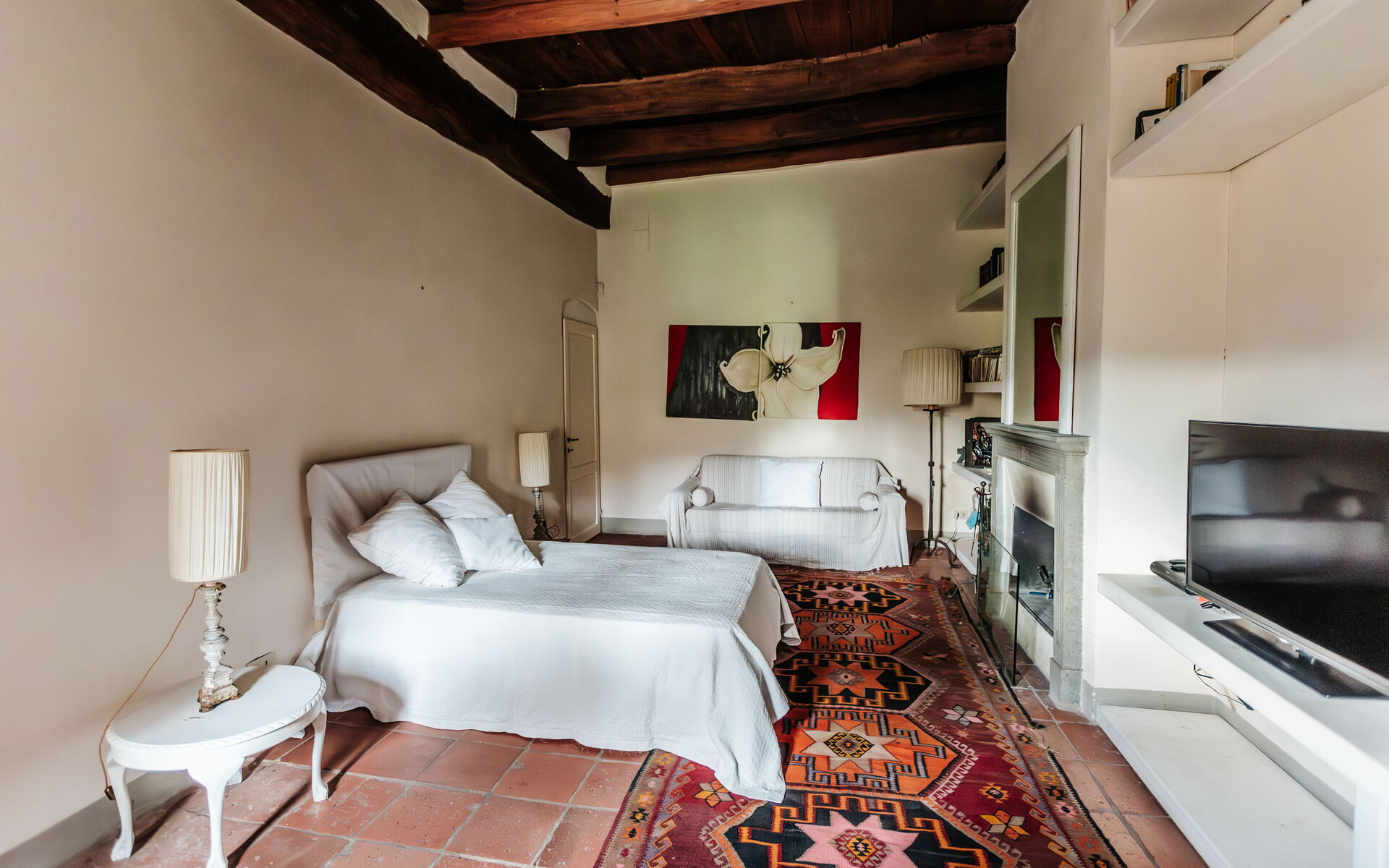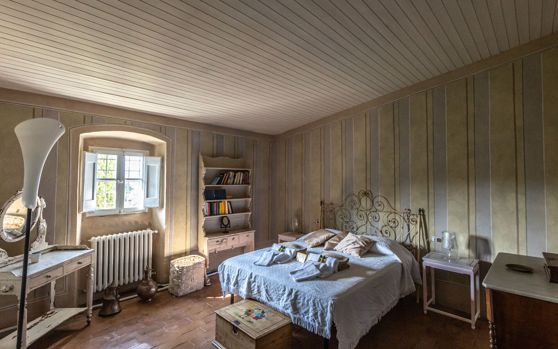 The property, divided into two connecting units, has a total area of about 800 sq. m. for a maximum of 22 people. The castle is set within vast, partially fenced grounds with a park, a well-equipped garden, a swimming pool with excellent views (15m x 6m, depth 1.5m-2.5m) and a small church which can be used for ceremonies and gatherings, all for exclusive use of the guests.