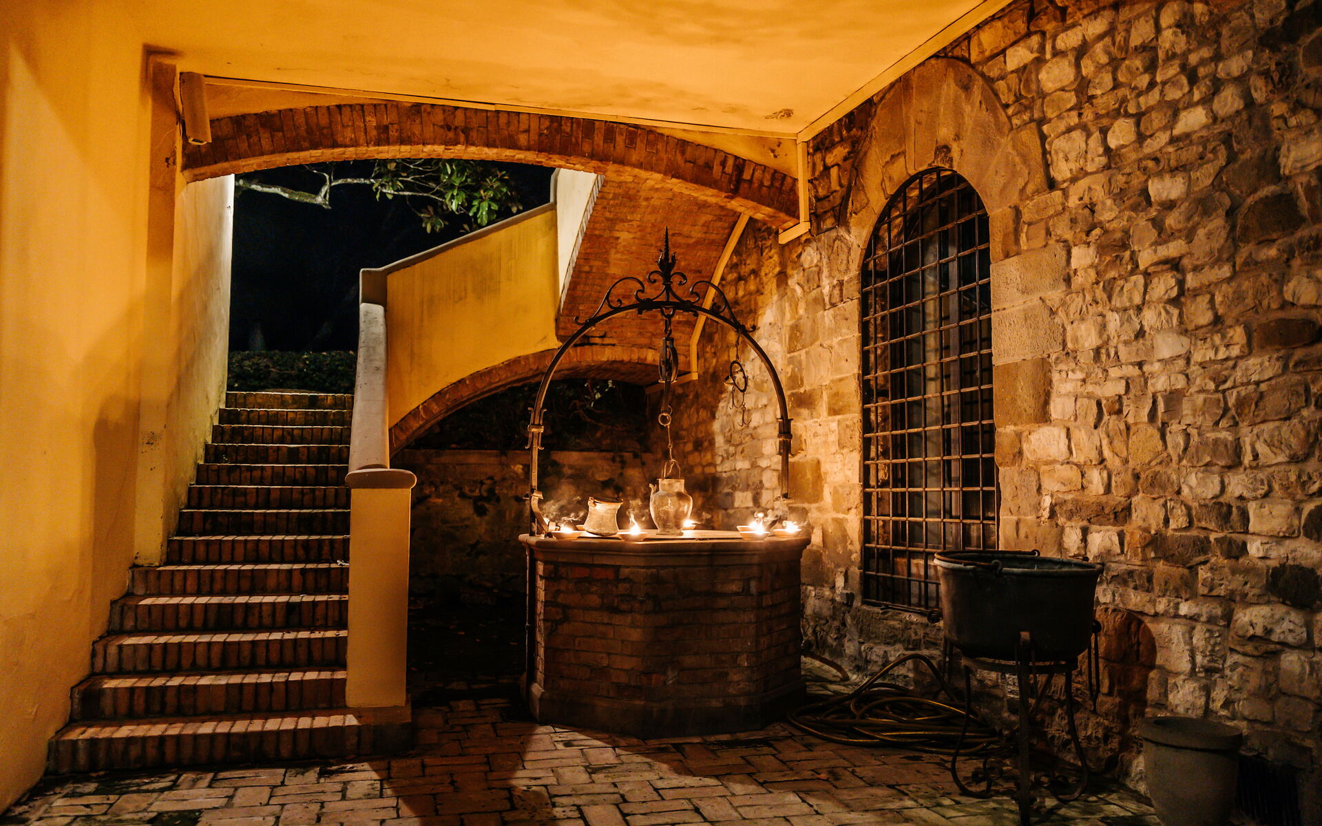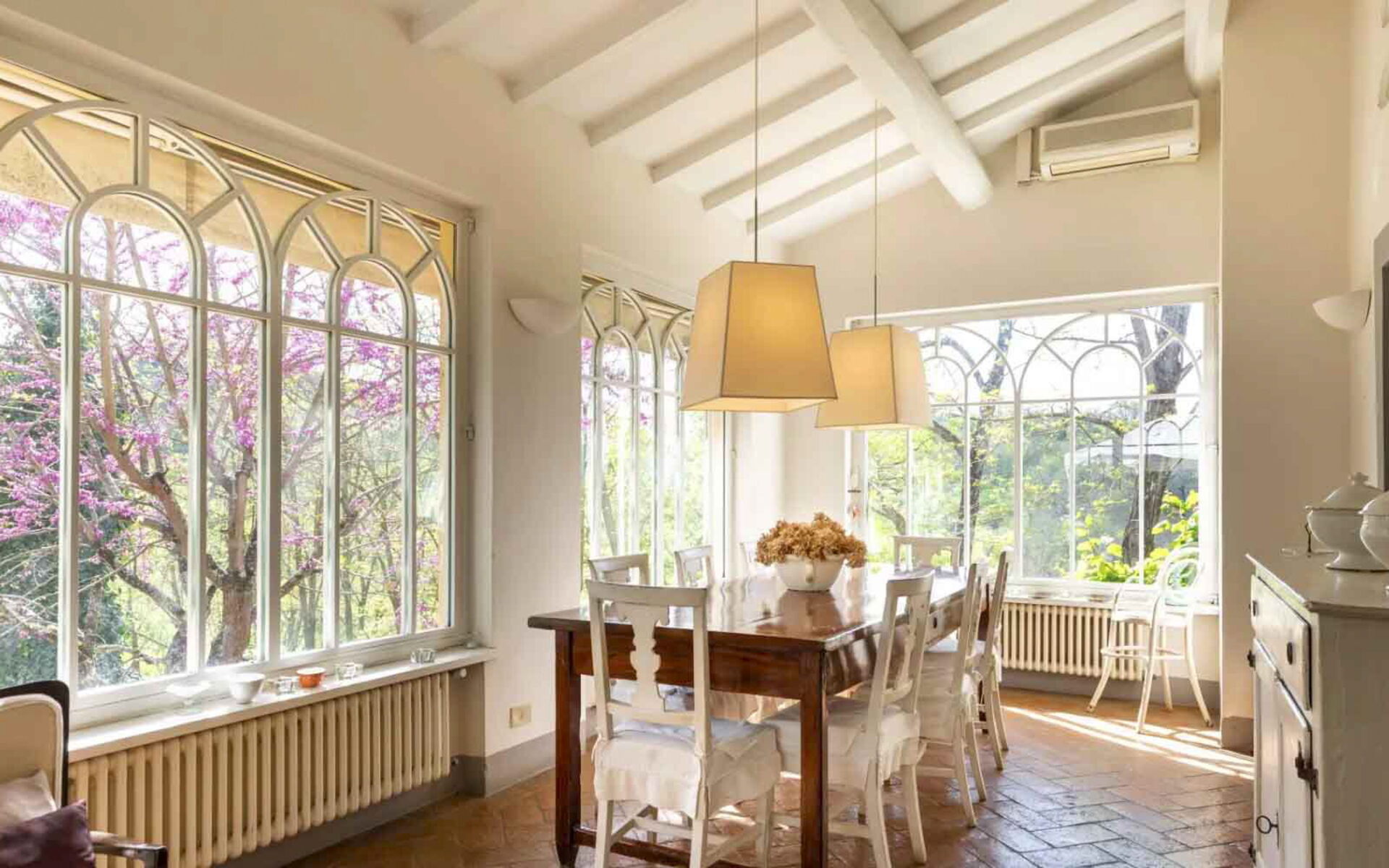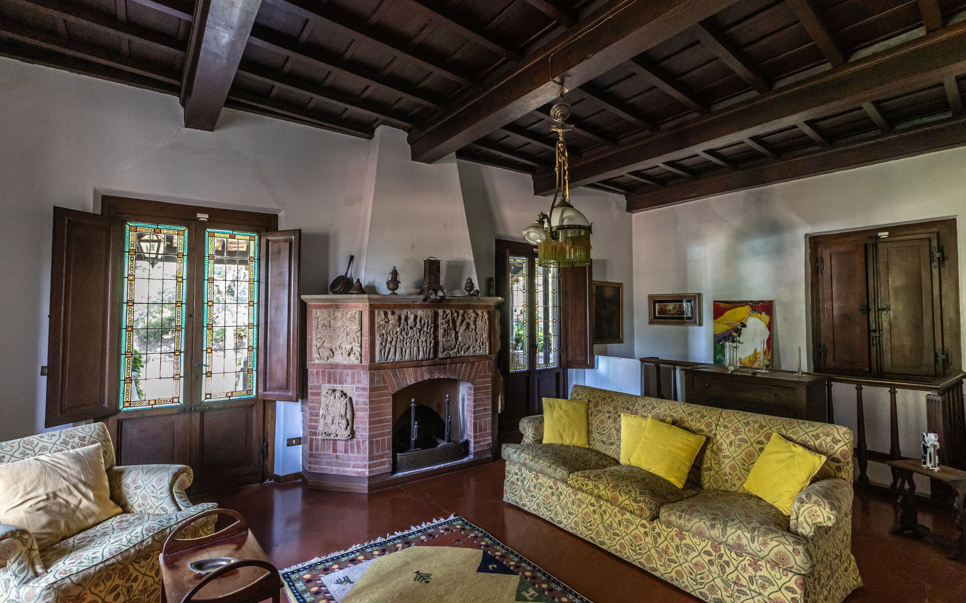 The interiors are furnished with antique and high quality pieces. The rooms, with the sunlight shining through artistically decorated Art Nouveau windows, the living room with its grand fireplace, the dining room, the spit-roast room and the wood-burning oven all help to create a convivial atmosphere, typical of these historic residences.