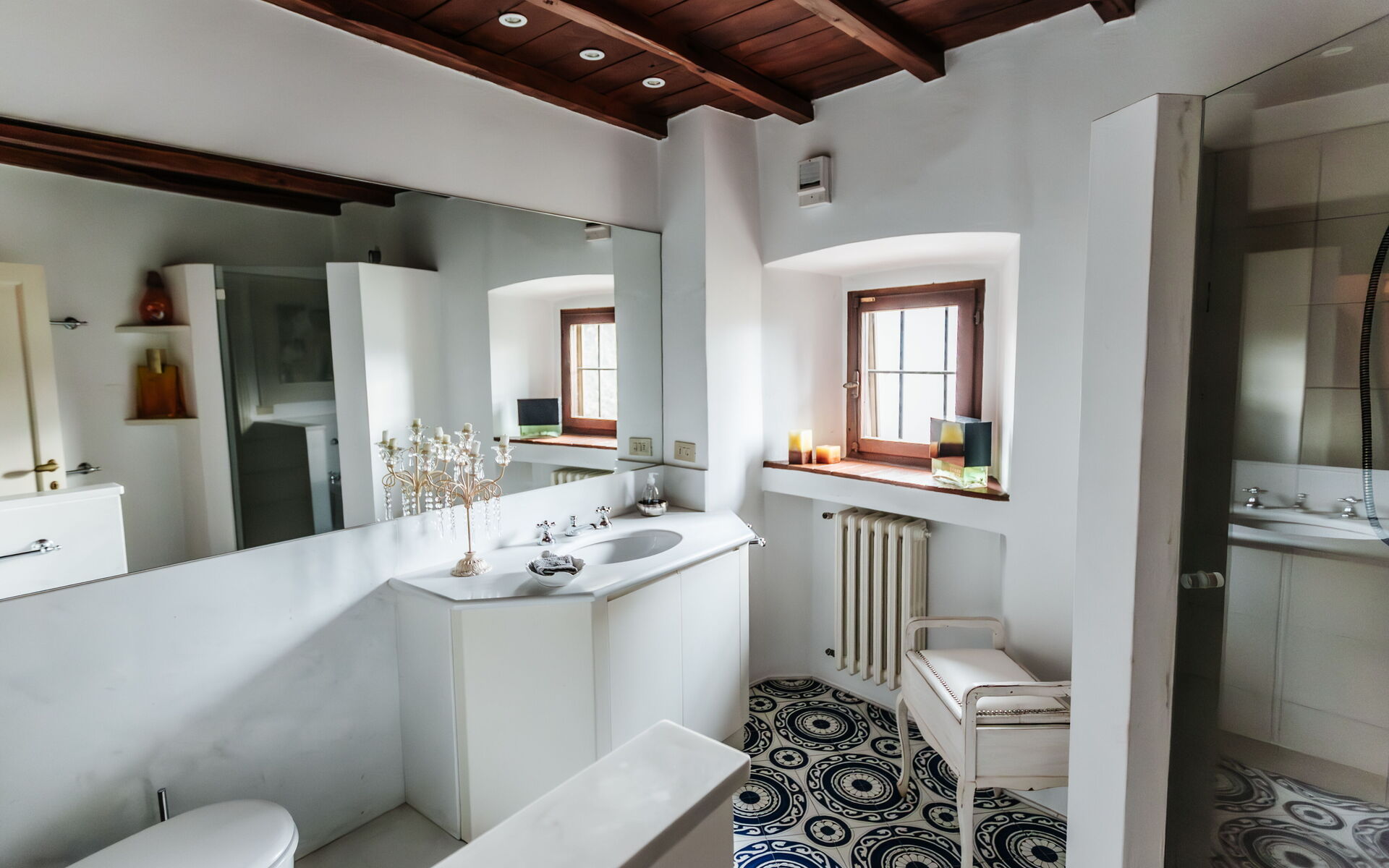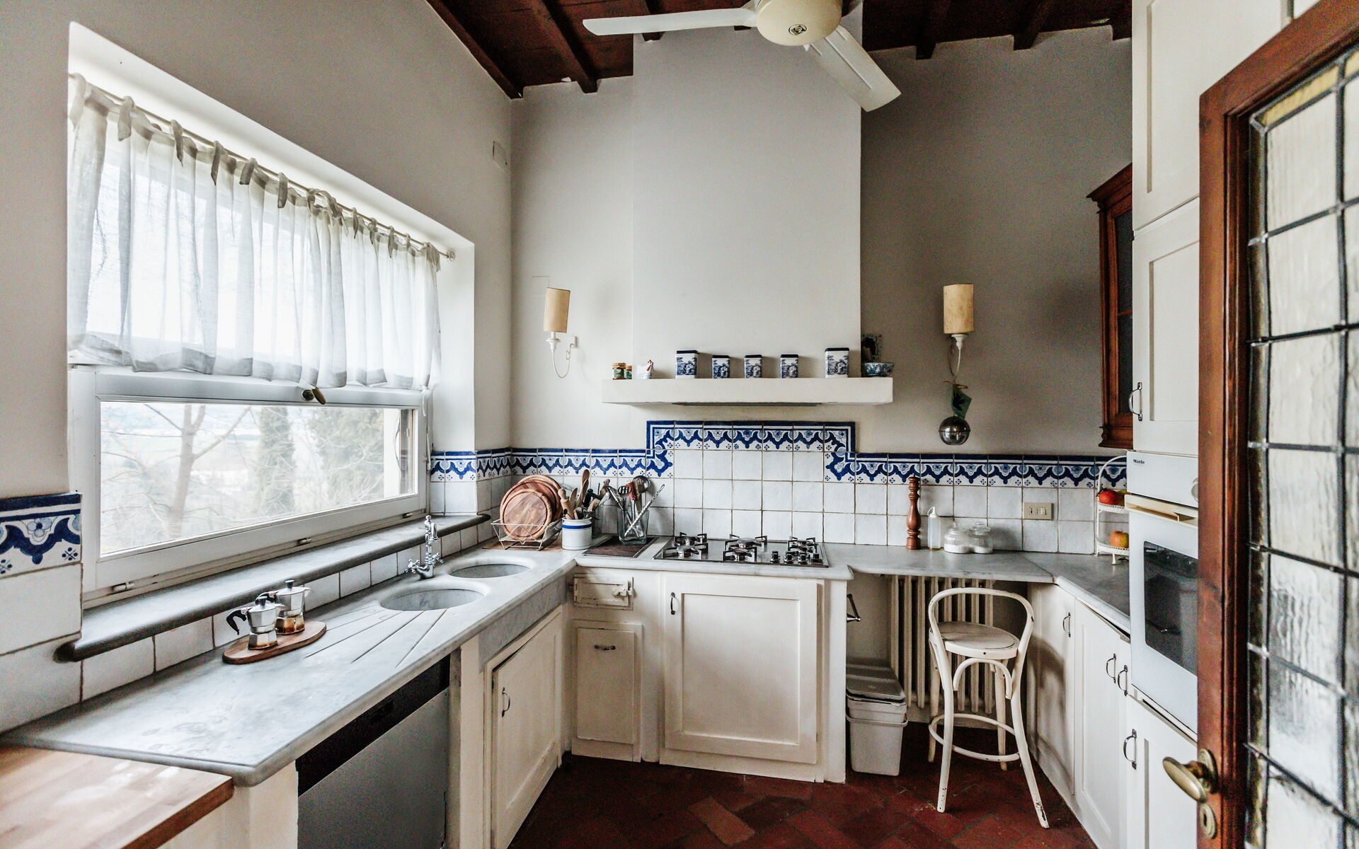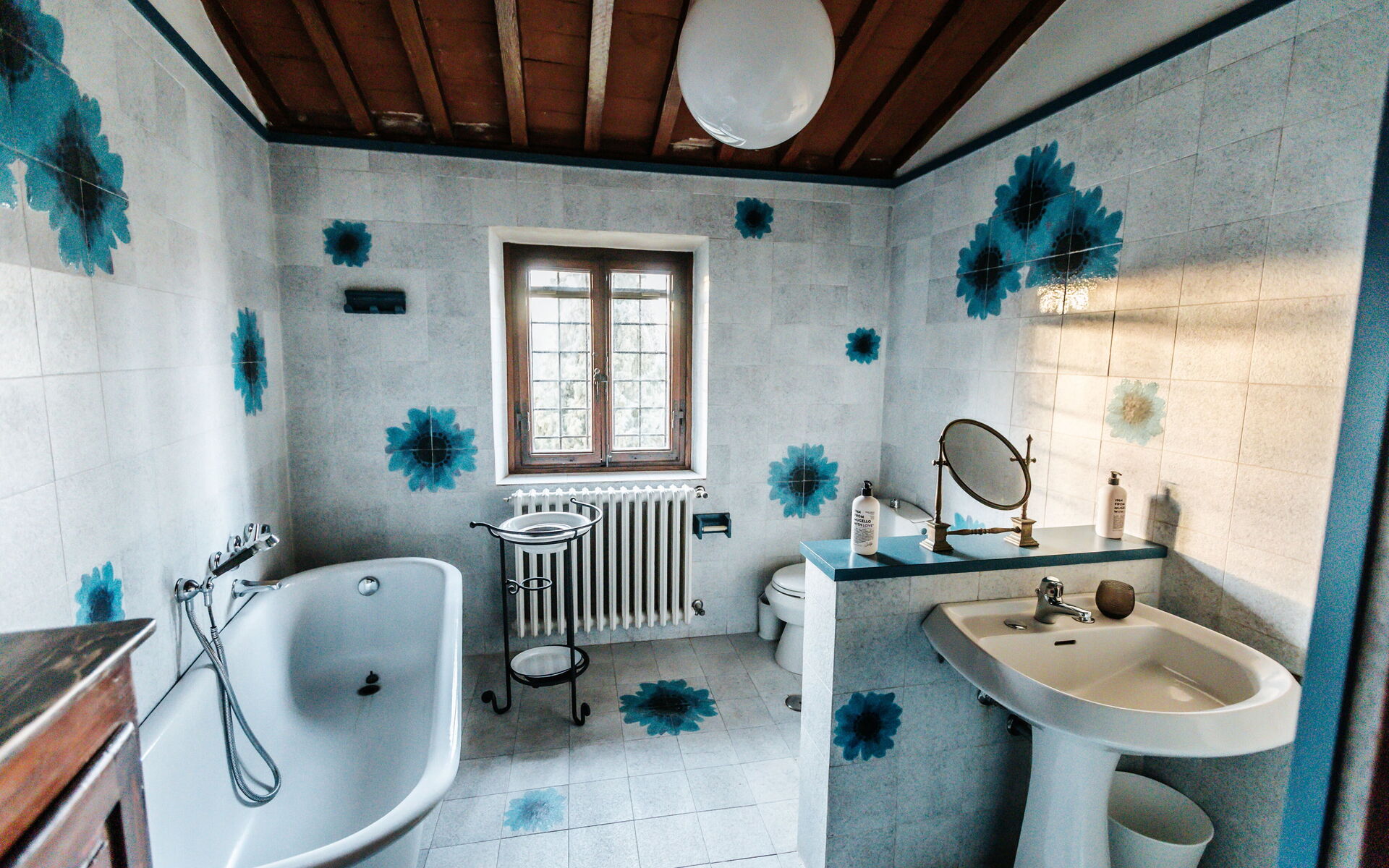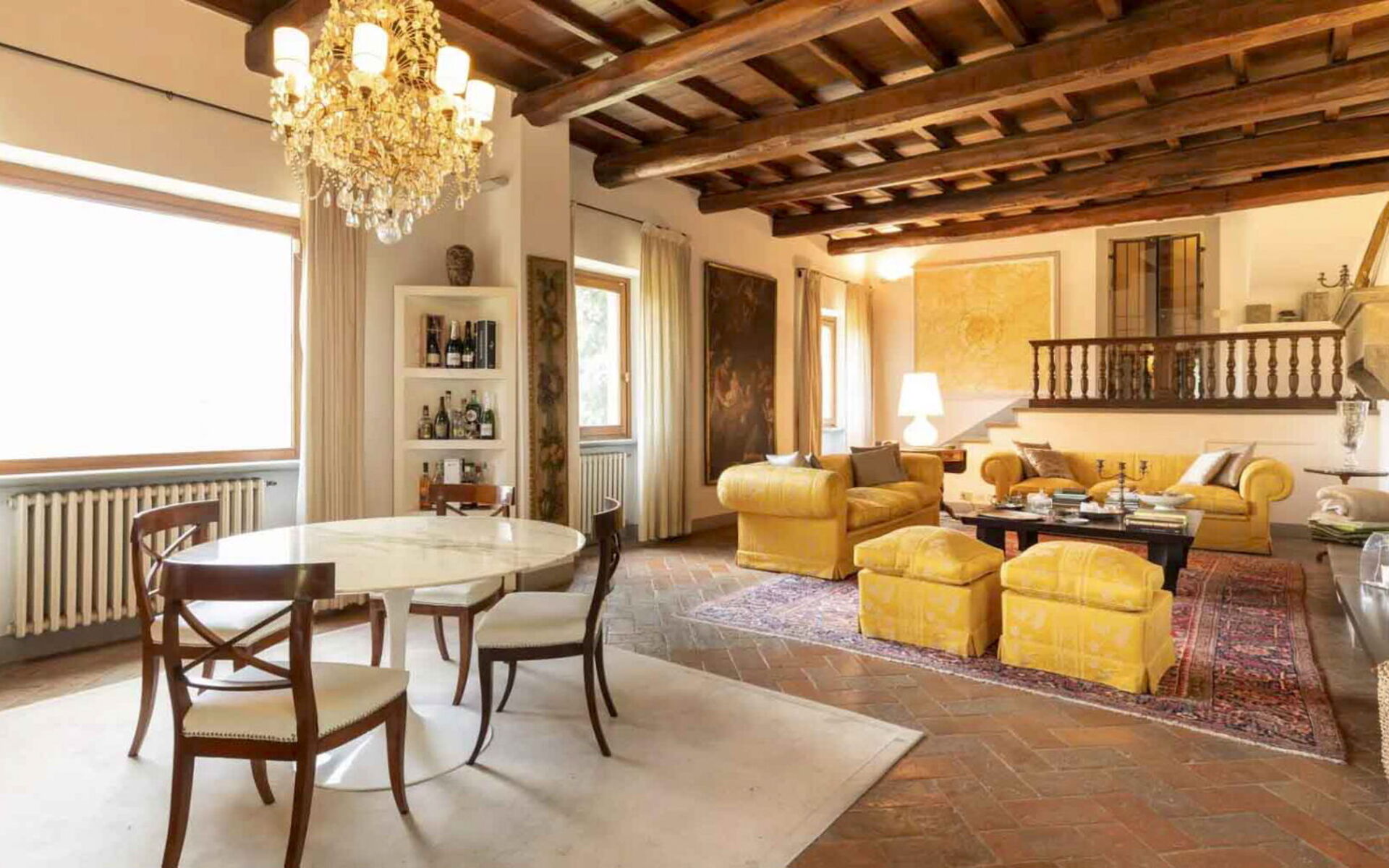 The interiors are furnished with antique and high quality pieces. The rooms, with the sunlight shining through artistically decorated Art Nouveau windows, the living room with its grand fireplace, the dining room, the spit-roast room and the wood-burning oven all help to create a convivial atmosphere, typical of these historic residences.