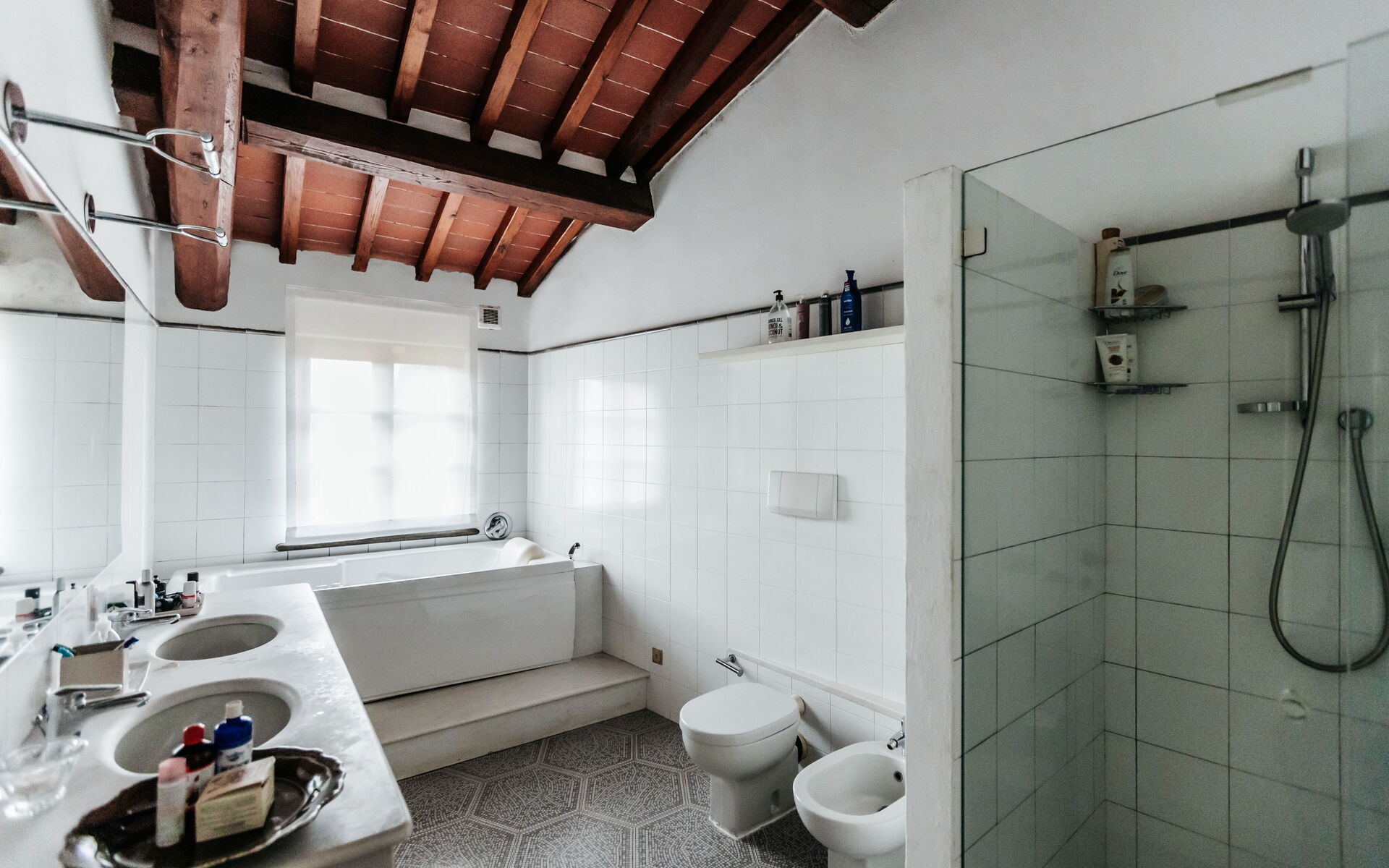 Second floor: 2 double bedrooms; 1 bedroom with single bed; 1 bathroom with shower (wc, bidet).