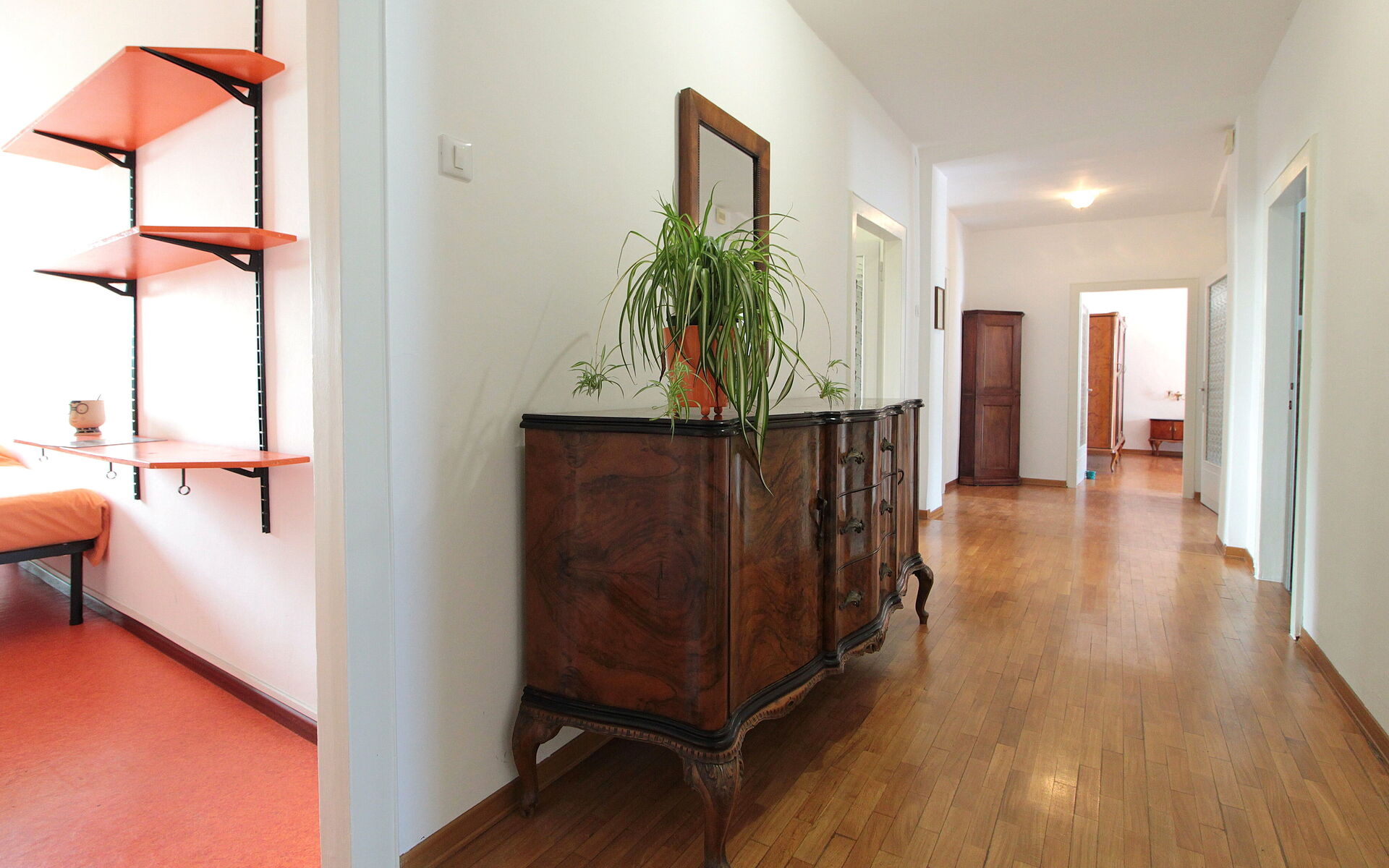 The apartment consists of 3 bedrooms (one double, one with two single beds, and one with a single bed), a living room, a dining room, a large wooden kitchen with a gas stove, and a bathroom with a shower. AC is available in the double bedroom and the twin bedroom. Electric heating available in the whole house. One pet is allowed free of charge.