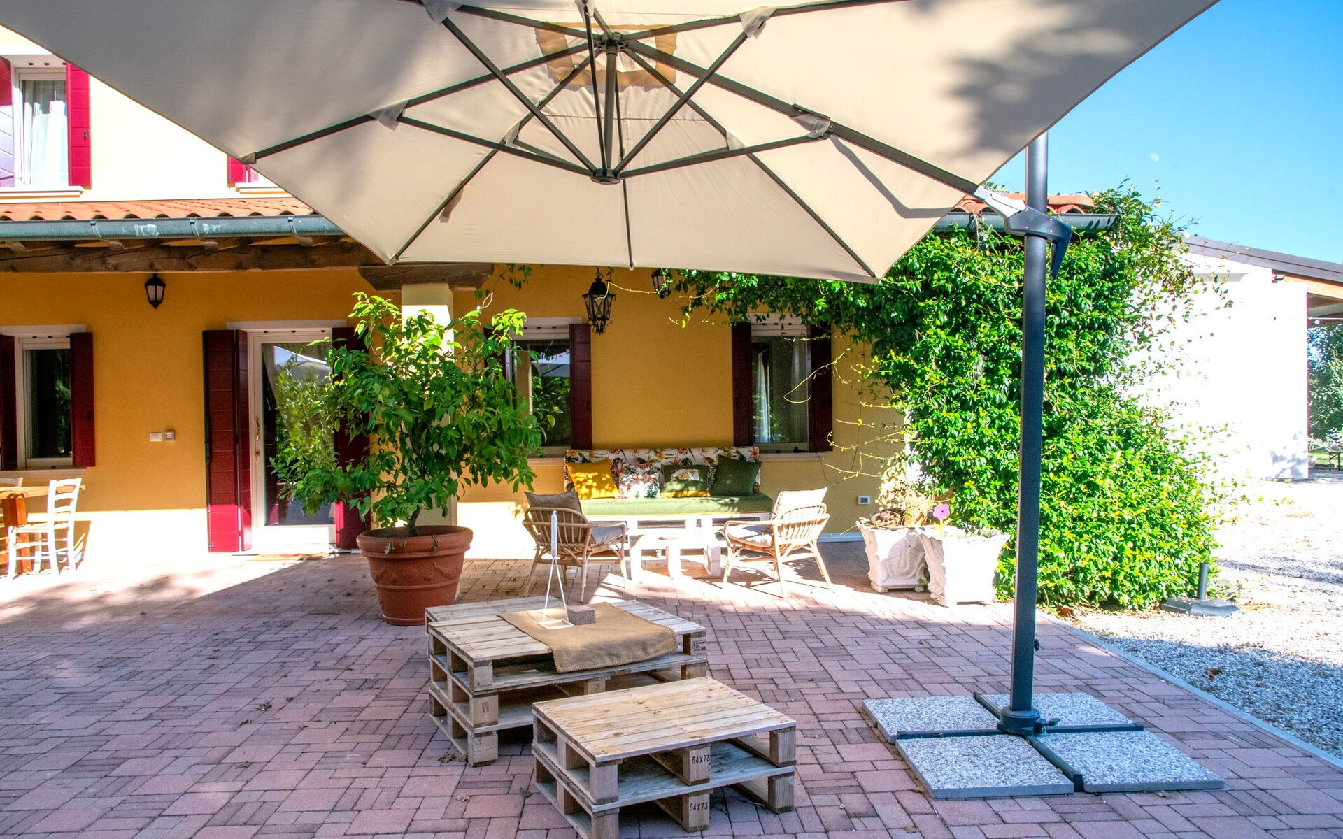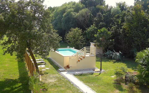 Guests have exclusive use of a large garden, rich in trees and flowers, at the end of which there is a swimming pool surrounded by umbrellas and sun loungers, perfect for relaxing sunbathing. The house also features a beautiful porch furnished with a table and barbecue, ideal for enjoying pleasant evenings.